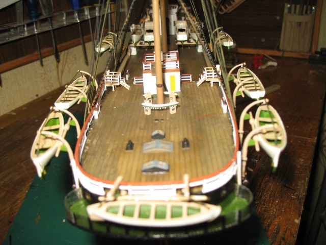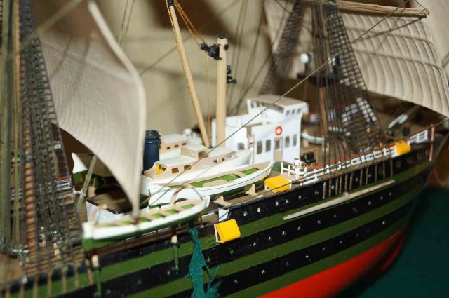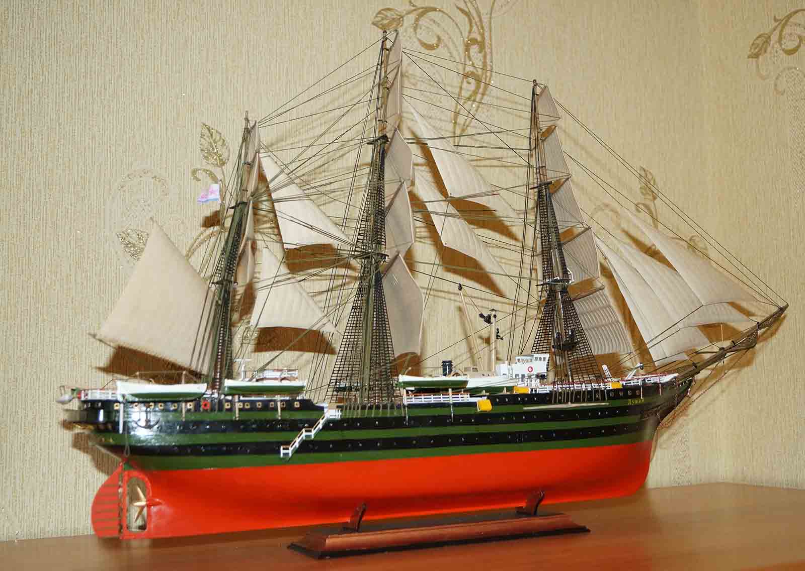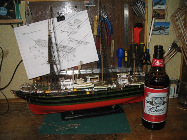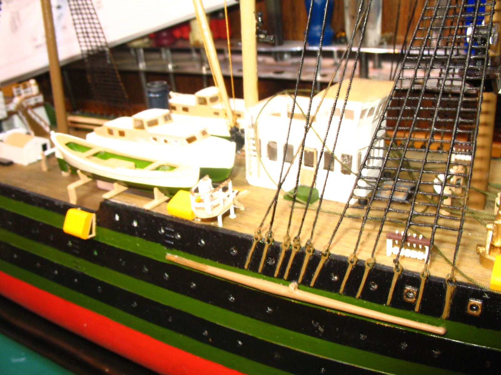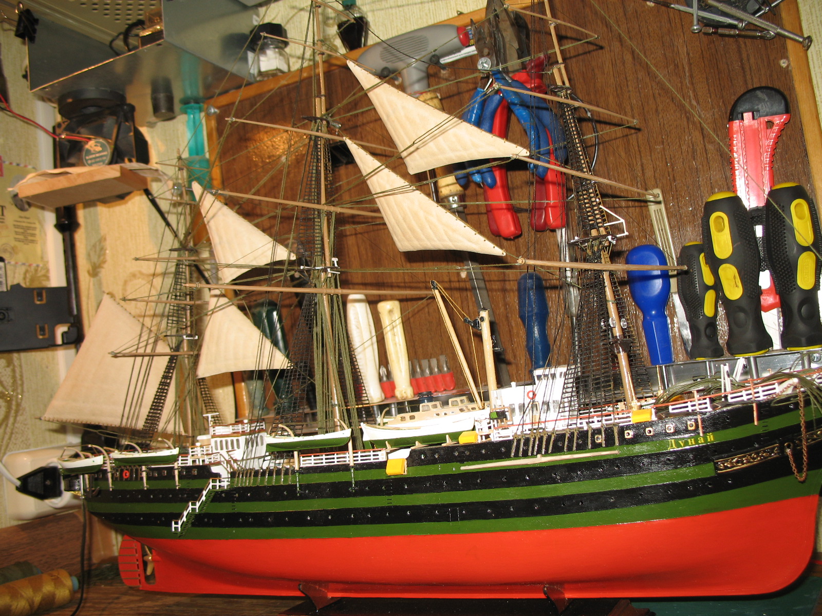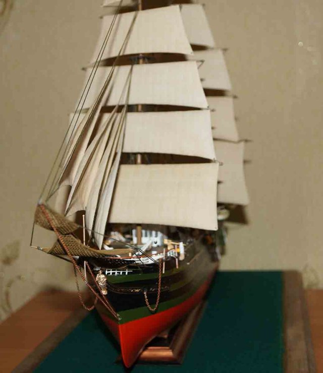 Модель понравилась. Удачно получилась палуба, а вот сам корпус надо было красить в серый цвет. По поводу нитей и блоков уже сказали.