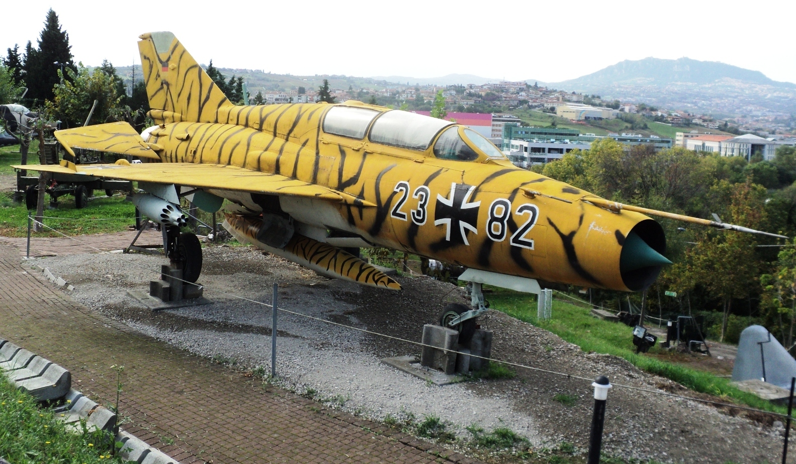 Но кое-что из ГДРовского наследства было продано в музеи других стран, или просто всем желающим; и представленный МиГ-21УМ б/н 2382, с/н 516915011 оказался в качестве экспоната в итальянском музее г. Римини.