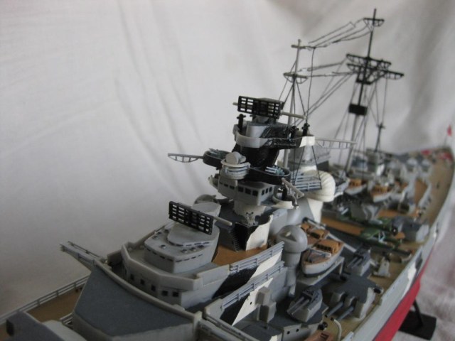 Отличная работа.Чтобы она была ещё лучше надо переделать все леера. Масштаб позволяет. На верхних палубах я бы закрыл(заменил_) их парусиновыми обвесами. Поменял бы такелаж. Он всегда будет "невмасштабе",но этот явно грубоват.Надо смотреть чертежи чтобы переделки соответсвовали оригиналу. И тогда еще можно о многом подумать.
