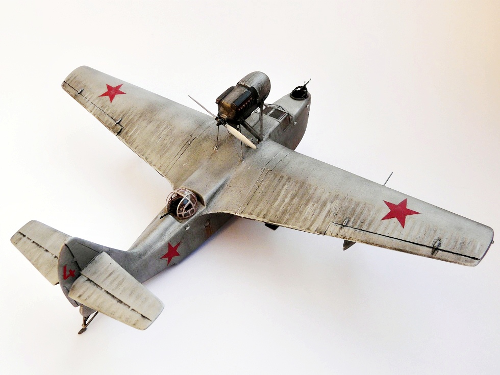 там у Вас какая то проблема с мотором, мотор там V образный а у вас на модели головка блока стоит так что как будто там два рядных мотора, и что это такое жёлтого цвета? ржавчина? так самолёт из фанеры.