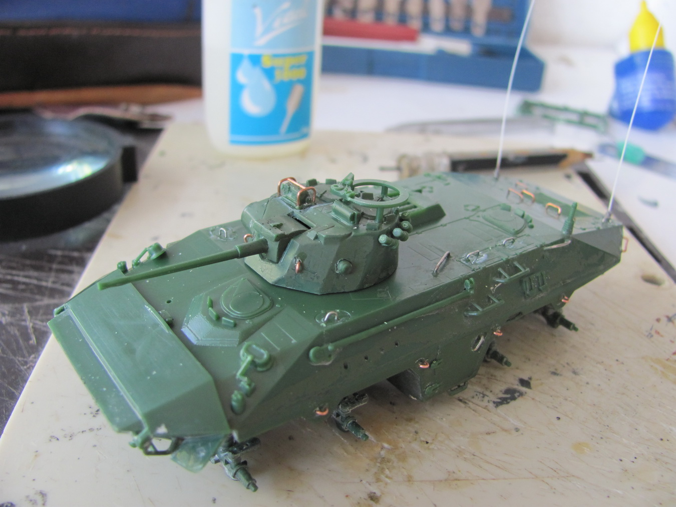 Выглядит приятно. Доработки хороши, сам любитель порой добавить ручек и креплений, но для поручней и ограждения приборов наблюдения в следующий раз желательно использовать проволоку потоньше (ИМХО, разумеется).