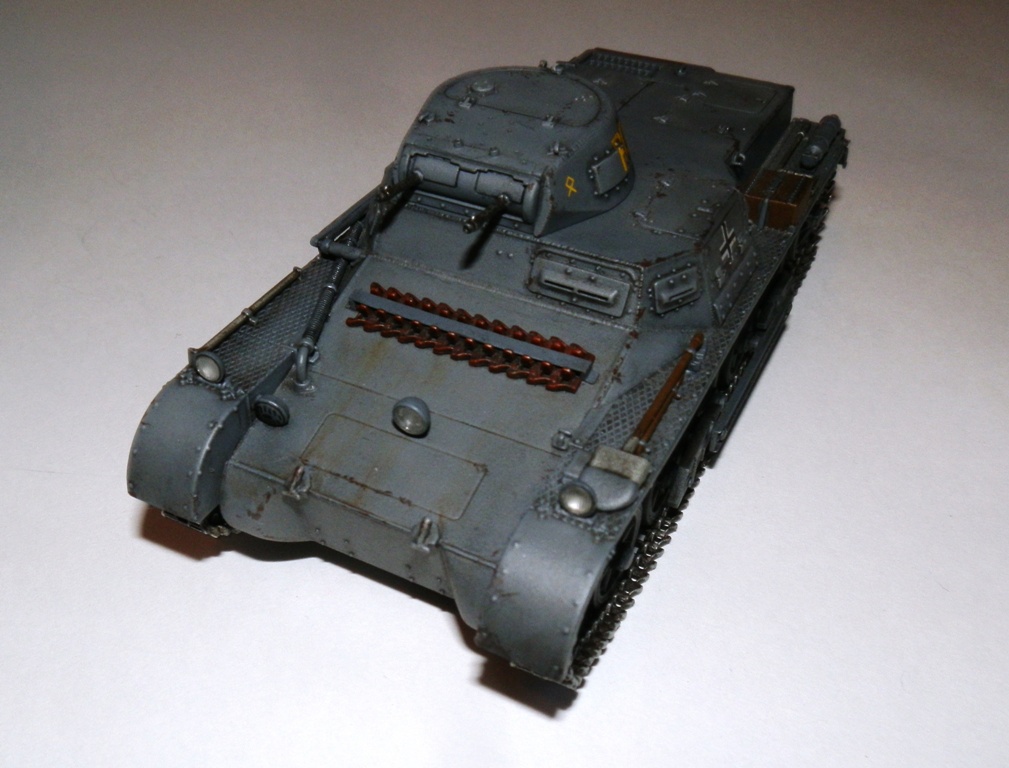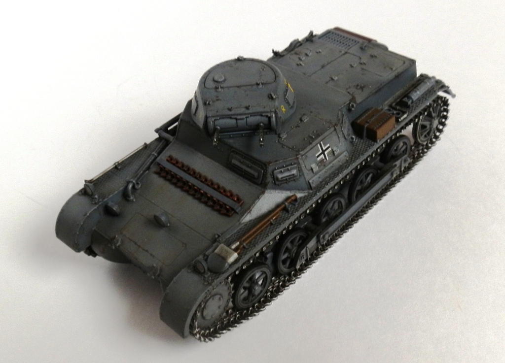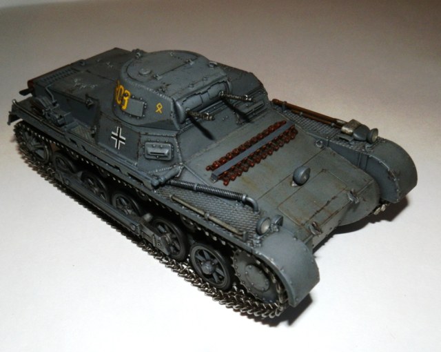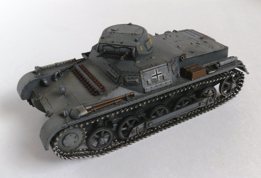 Доброго времени суток, уважаемые Коллеги. Разрешите представить модель немецкого легкого танка Pz I Ausf B от Дрегона в своем исполнении. Выкладываю повторно, изменив фотографии, надеюсь сейчас фотосессия лучше. Набор в сборке нареканий не вызвал ни каких,все сходится на щелчок, получил только положительные эмоциию. Обзор можно посмотреть на моей странице http://karopka.ru/community/user/11611/?MODEL=307490. Модель собирал искаропки, из доработок только добавил и подправил кое где сварные швы. Красил акрилом от Валехо,пытася слегка "помодулировать)), смывка Миг темная и черная Тамия, тонировка маслом от Сонет. Финишное покрытие- матовый лак Bosny из баллона.