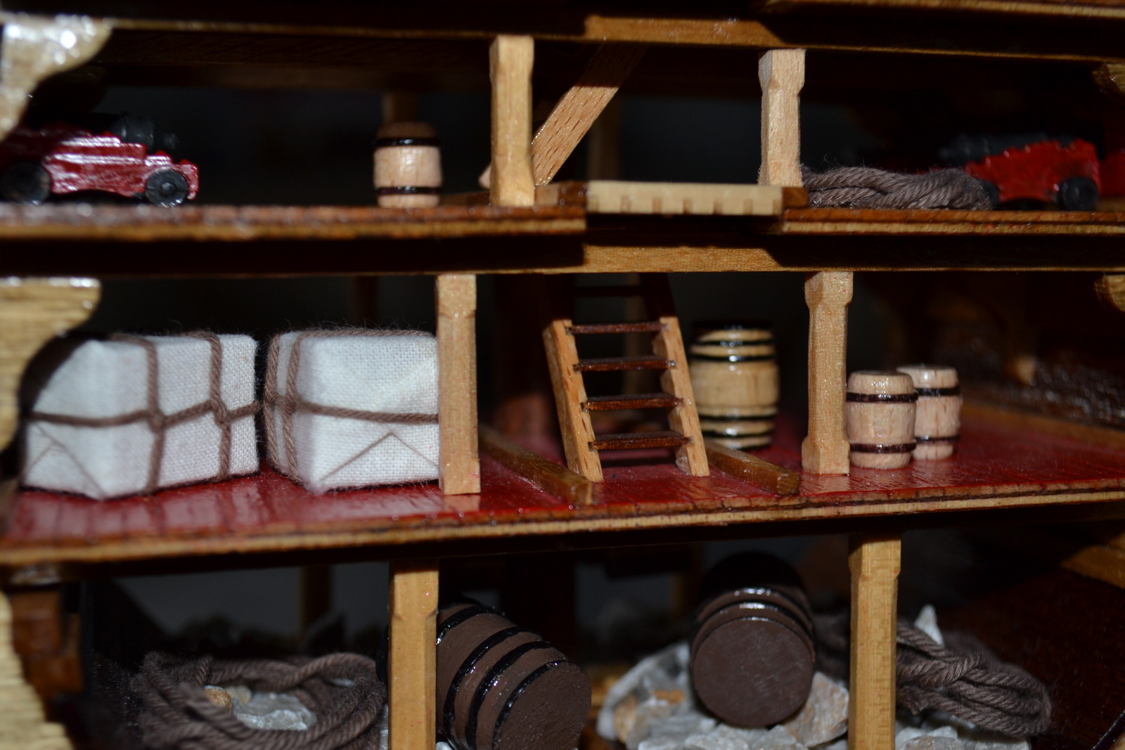 Вот в трюме канаты хорошие,не волосатые,а бочки выполнены не айс-днища должны быть утоплены,пушки не обвязаны все.Один брюк-это считай что ничего.Блеск тоже в глаза бросился....