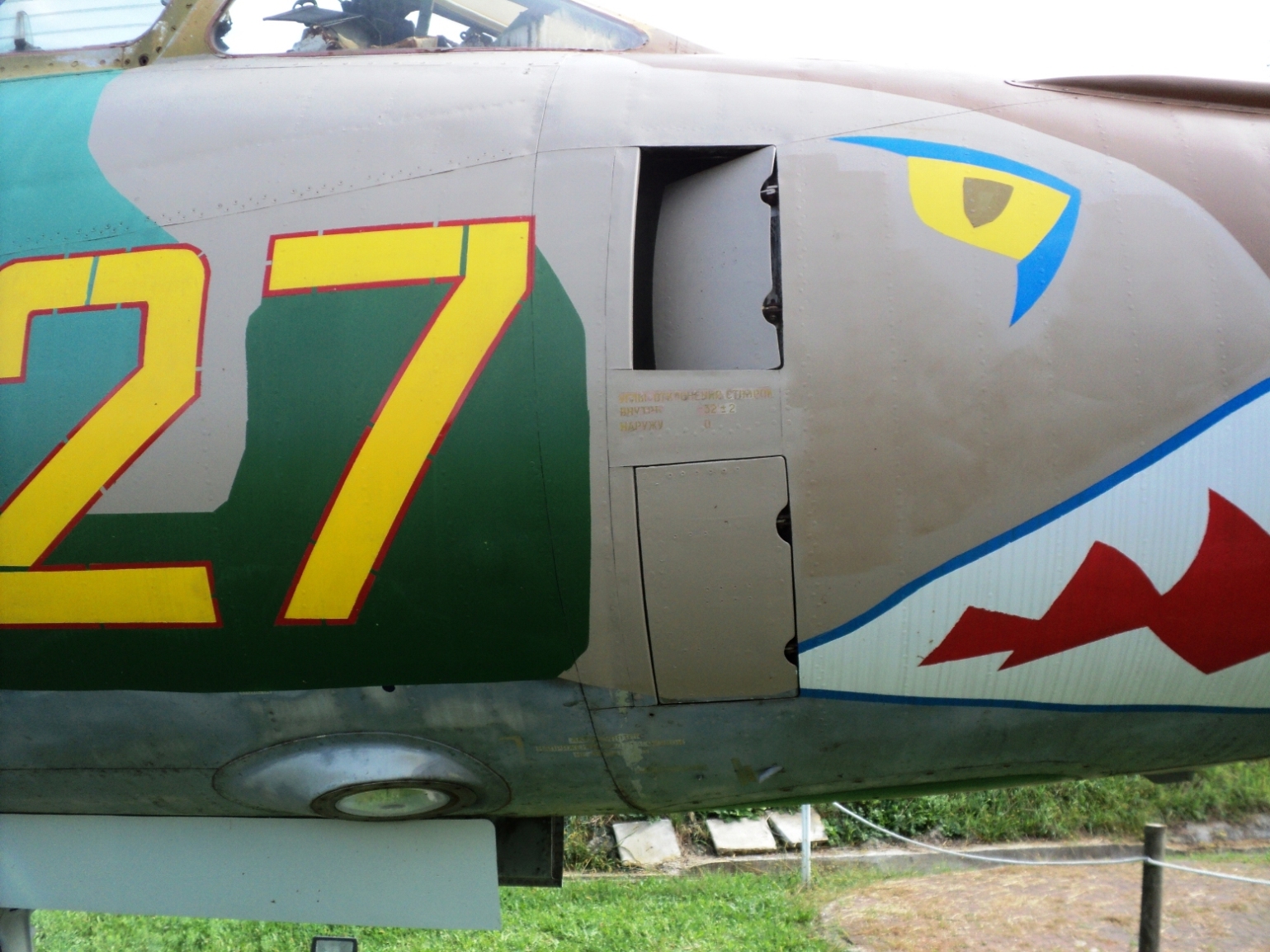 Снято в октябре 2014 года в авиамузее г. Римини. К моему приходу как раз заканчивали его перекраску, так как последние годы он был жутко выгоревший. Музейные работники ушли на сиесту, оставив под фюзеляжем ведёрки с краской. Покрасили, к слову, неплохо…