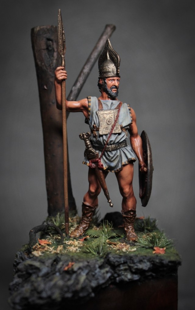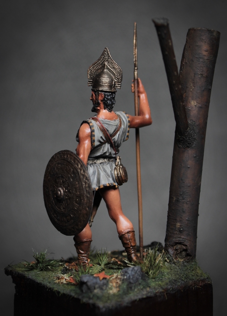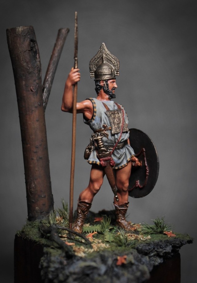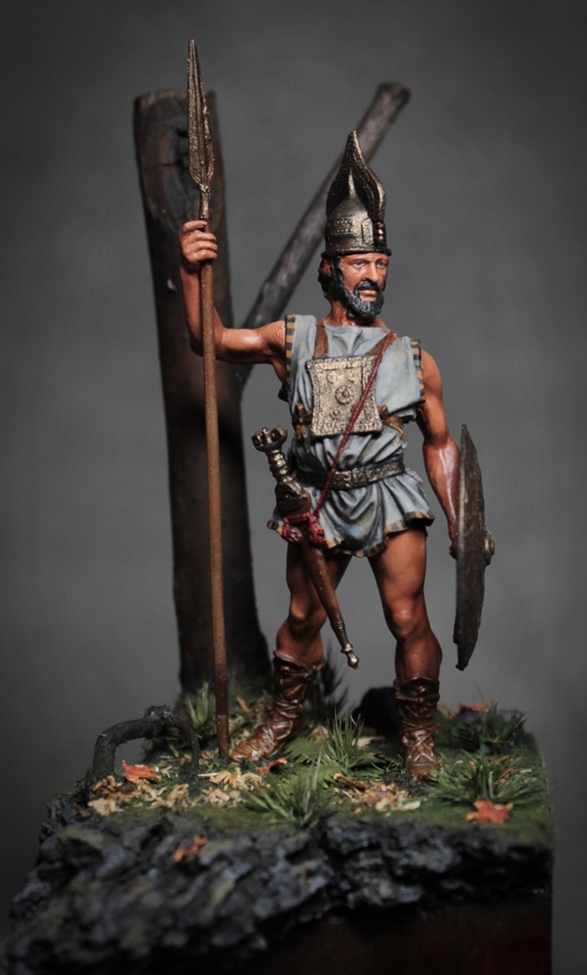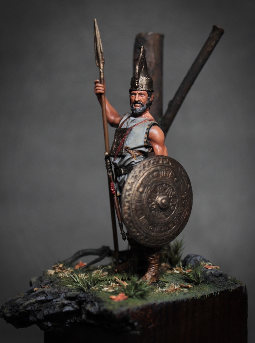 Разделив общие восторги мне хотелось бы остановится на шлеме. Такое впечатление, что он на два размера меньше головы воина. Второе, он слишком грамоздкий. Склейте подобный из картона, наденьте на голову и просто помахайте рукой. Уверен единственное, что будет занимать Ваше внимание это удержание данной конструкции на голове. Скорее всего, мы имеем дело с парадным шлемом вождя. Прошу относится ко всему выше написанному в ракурсе выставленных оценок.