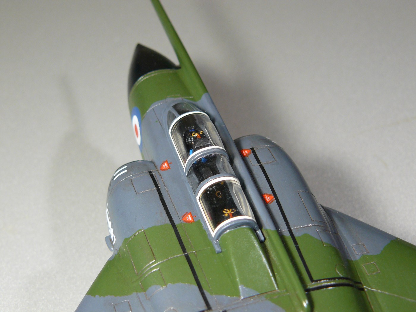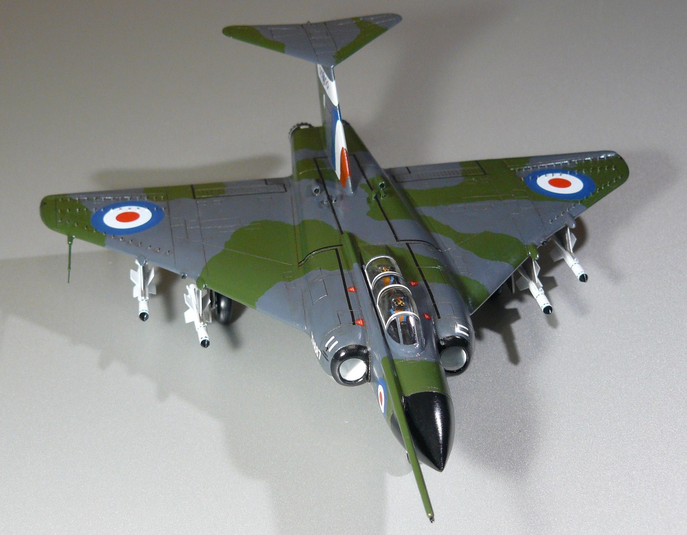 Ну и крыло, 4 не выступающие пушки(просто круглые порты в крыле) были на ранних моделях Джевлина, на 8 и 9 кожухи стволов были слегка выступающими, причем внутреннюю (а не наружную, как вы сказали) пару пушек часто снимали, как и представлено у меня на модели.