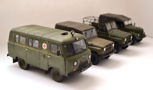 Модель в сборке не очень, плохая стыкуемость, пришлось много точить и пилить. Конечно немного получше чемь УАЗ 469 от Military Wheels, но очень много схожего.