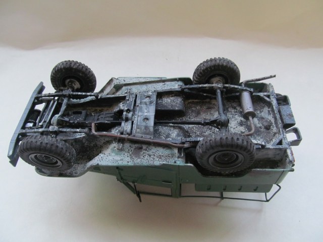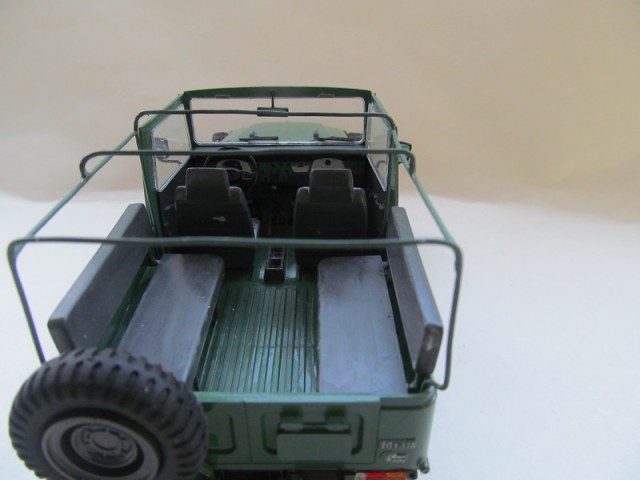 Легкая конверсия Италовского набора №6352 "ARMED PICK - UP". В коробке имеется две версии задних сидении(есть еще один поперечный диван, хотя по инструкции не устанавливается вообще), эти мне понравились больше. Каркас для тента самодельный, паяный из медной проволоки. Красилось все Ганзой, лак 2к автомобильный, слегка загрязнил Валдеровскими пигментами.