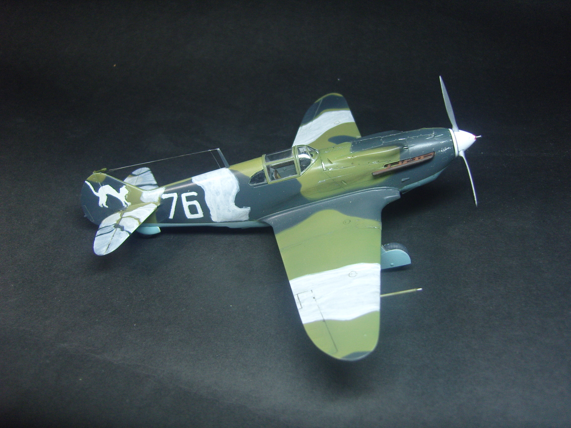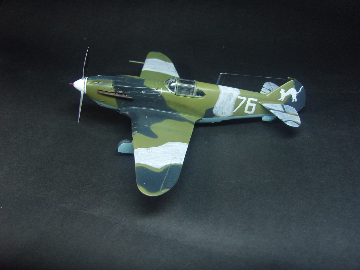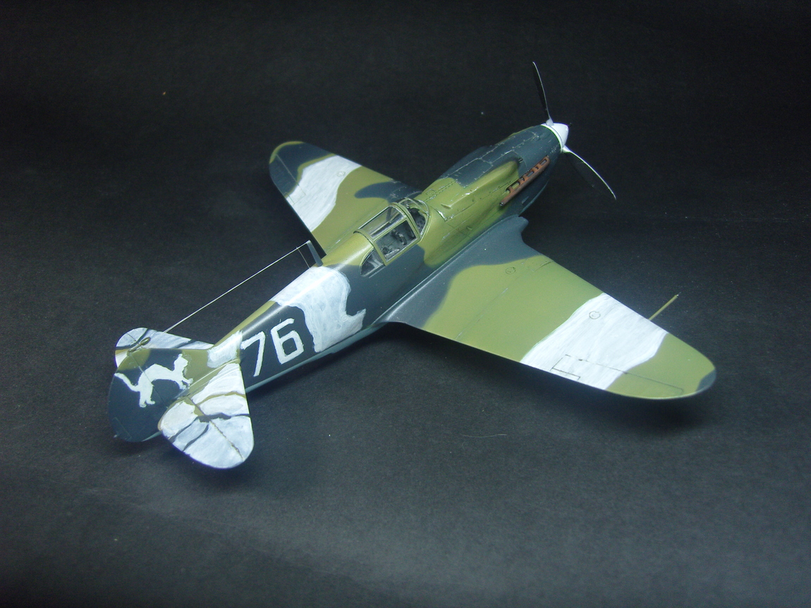 Позвольте вам представить мою вторую модель самолета в масштабе 1/48. Это далеко не новый, всем хорошо известный кит от АйСиЭм. Наборчик не самый идеальный, есть и облой и местами не стыковка но в общем за ту цену что он стоит набор прекрасный. Хоть я и читал что несколько недоразмерена модель но в общем очень копийная, а резать весь корпус из-за пары миллиметров ИМХО лишнее, если об этом самому не указать никто и знать не будет. Понравилась кабина, достаточно подробная. Дополнений не использовал, собирал из коробки. Первый раз попробовал изготовить привязные ремни, в итоге получилось несколько великовато, но лучше чем их отсутствие. створки воздухозаборников оказались непролитыми, делал их из пивжести. Стволы и трубка Пито - иглы, антена - мононить. Добавил проводку к колесам но за щитками почти ничего и не видно. Как прототип выбрал машину капитана Л. Гальченко 145-й ИАП. Декаль рассыпалась сразу, рисовал в ручную, так что простите за отсутствие мыша, побоялся перемулевать, он достаточно маленький. Я вообще не претендую на историческую достоверность, скорее это по мотивам. Вариантов окраски этой машины в интеренете масса, и в два цвета и в три цвета. Я больше верю все таки в черно-зеленый вариант, врятли имели место быть два разных зеленых цвета. Где мог, наносил камо по фото, где нет - доверился ICM. Красил Аканом, химия от Wilder. В процессе фотосессии ободрал колеса, прошу за это не пинать. Уже докрасил, но городить опять лампы и фон не стал что бы перефотать.