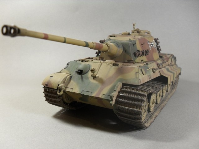 Всем здравствуйте, хочу представить вам своего кинга, модель от известного производителя в сборке проблем не было, гусеницы сделал рабочими , путем сверления и крепления на проволочки каждого трака, мук много , но после покраски модели и траков по отдельности, собрать все в комплект) не составляет труда, еще добавил продку к фаре и смотровые триплексы, вроде по сборке все.