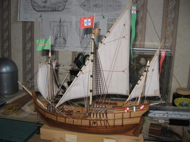 Каравелла - один из первых и наиболее известный тип кораблей, с которых начиналась эпоха Великих географических открытий. Суда подобного типа имели две (или более) мачтыс косым латинским парусным вооружением(каравелла-латина). Хотя на каравеллах нередко использовалось и прямое парусное вооружение (каравелла-редонда). Они были приспособлены для плавания на мелководье и использовались как для рыбного лова и каботажных плаваний, так и в качестве лёгких военных кораблей. Так, в Португалии у каравелл сохранилось латинское парусное вооружение, как более подходящее для плаваний вдоль африканского побережья. А в Испании развитие получает каравелла-редонда с прямым парусном вооружением на фоке и гроте, которое более подходит для трансатлантических переходов.