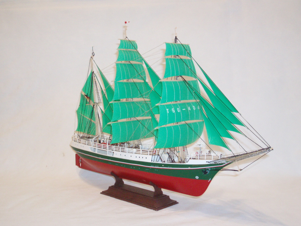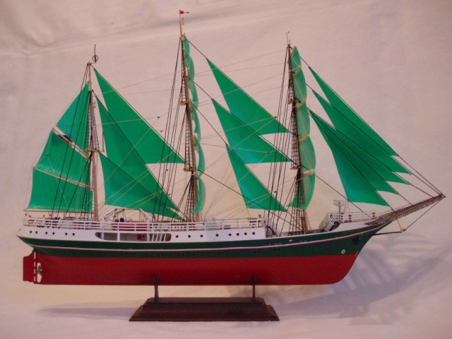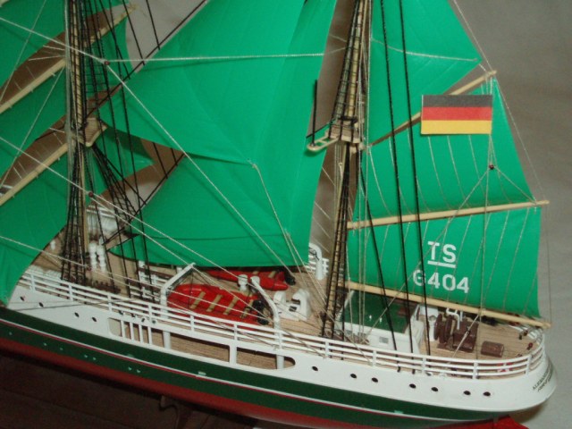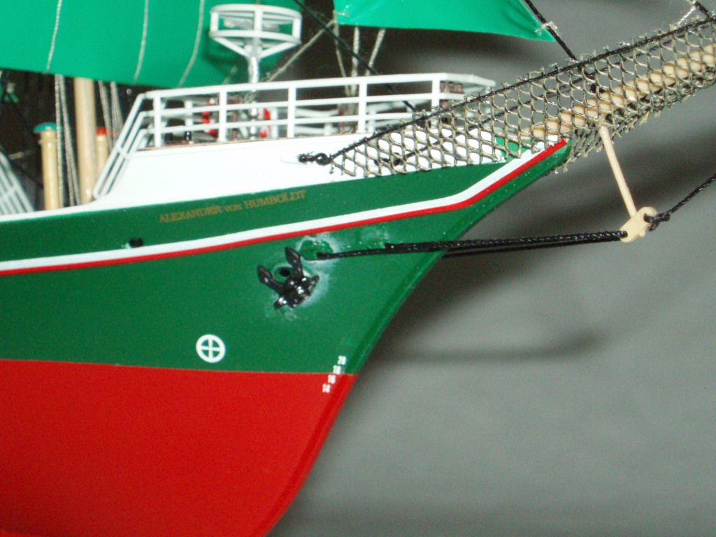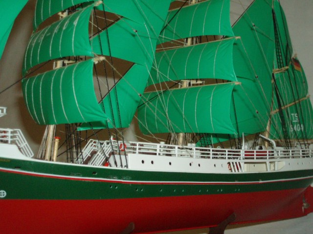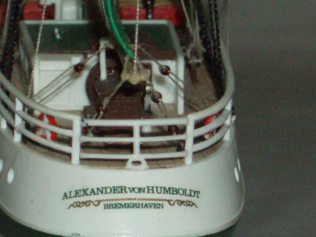 Барк "Alexander von Humboldt" - это парусник со столетней историей. Корпус судна под названием "Bismark" был заложен в 1906 году и строился как плавучий маяк. В 1986 году судно отремонтировали и его приобрела Ассоциация учебных парусников и переоборудовала в трёхмачтовый барк. Фиансовую поддержку оказала пивоваренная компания Beck. Традиционным цветом компании является зелёный цвет, а значит паруса и корпус судна тоже стали зелёными. Парусник вступил в строй под названием "Alexander von Humboldt". В 2011 году барк продали на Багамские острова. Масштаб модели 1:150. Качество деталей хорошее. Собирал по инструкции, вопросов е возникало. Красил автоэмалями из баллончиков и акриловыми красками кистью. Блоки имитировал биссером.