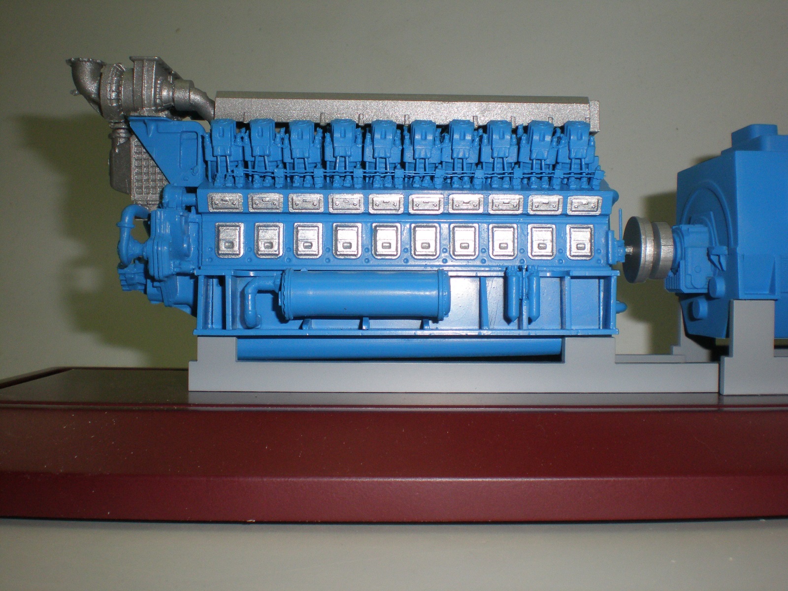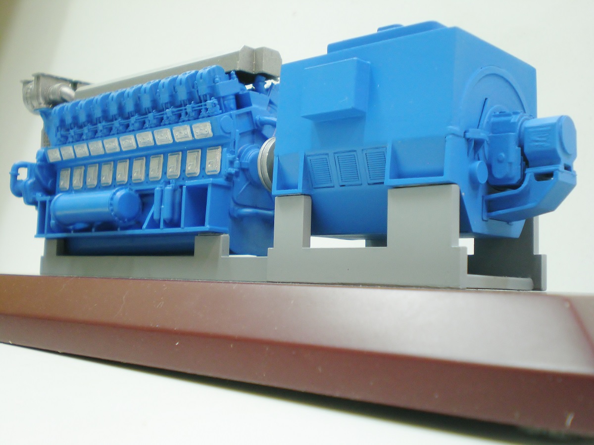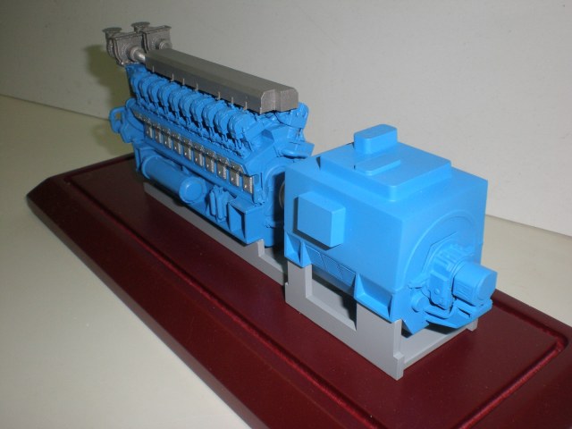 Ох уж эти заказчики... Что только не запросят! Вот неделю назад с коллегами завершили серию в 50 таких дизель-генераторов - в реальности на тепловозах установлены 12- и 16-ЭДГ. Но видимо Коломзавод готов перейти и к таким монстрам. Дизель был разработан в 3Д и выращен на принтере - и отшлифованный экземпляр запущен в смоляное литьё. Генераторы мне нарезали по четртежу из оргстекла и я их "сваривал" метиленом. Сооружали эти агрегаты кроме меня ещё 4 человека, но несколько штук сделаны мной полностью, весь цикл производства. Работа очень сложная - в каждом дизеле для сборки надо просверлить около 300 отверстий, вставить 84 проволочных прутка, окрасить подетально и склеить.