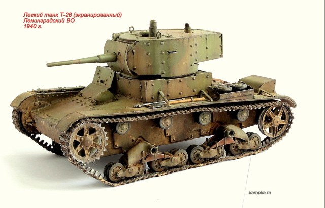 Выставляю очередную поделку завода № 174 - легкий танк Т-26 экранированный дополнительными бронеплитами по опыту финской войны.