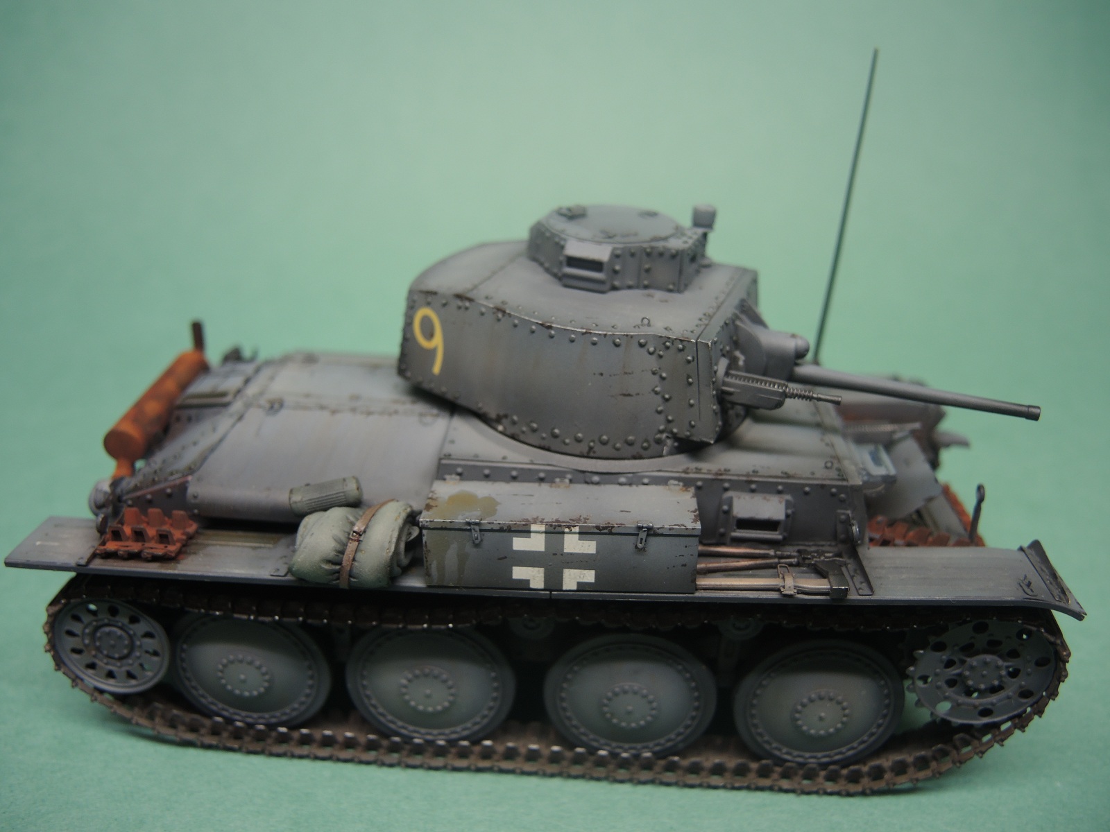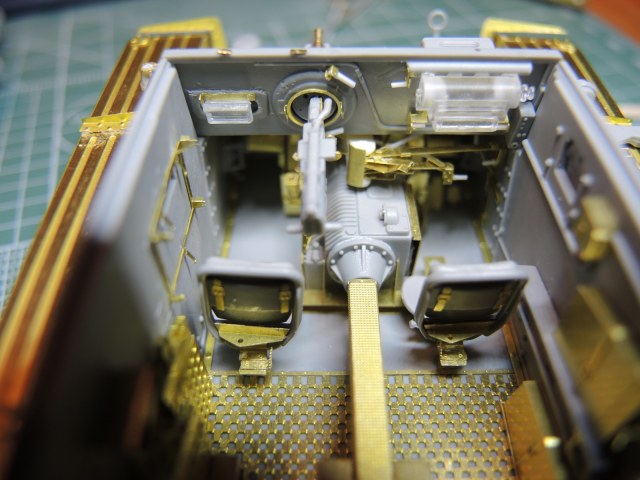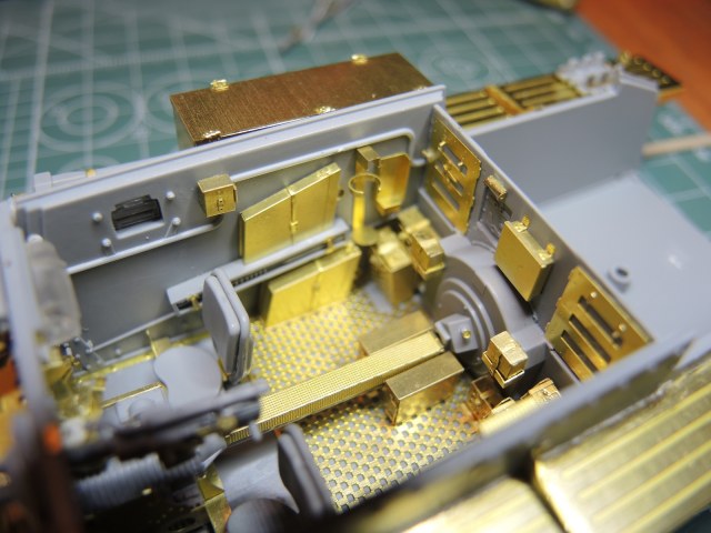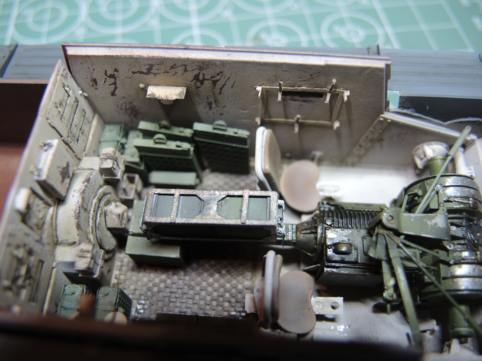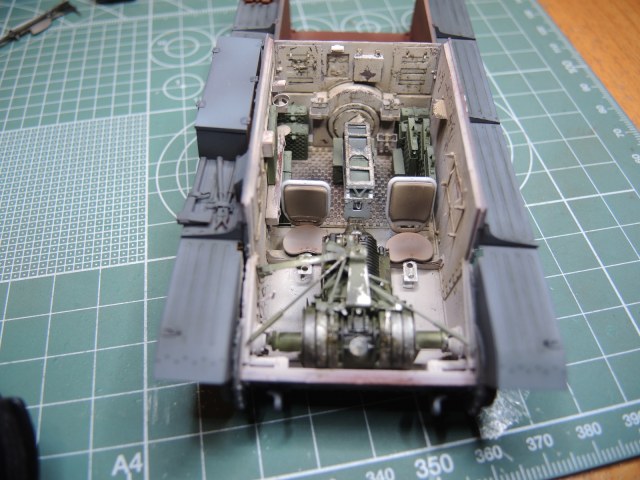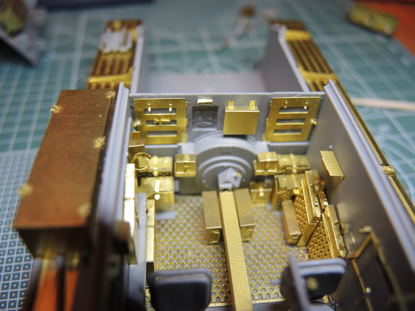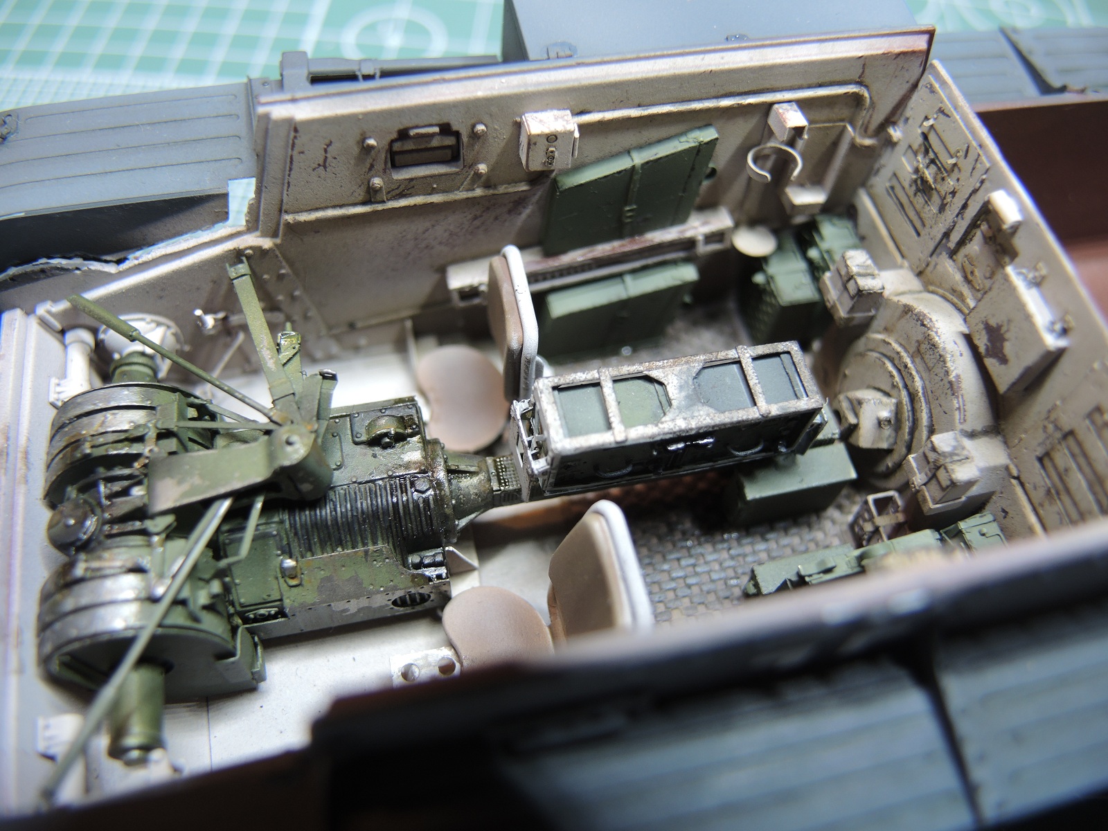 Работа с травленкой образцово-показательная. Интерьер классный вышел. Мне кажется ему чуть-чуть темных фильтров и смывки не хватает и катки припылить, тогда бы и вопросы с синевой отпали.