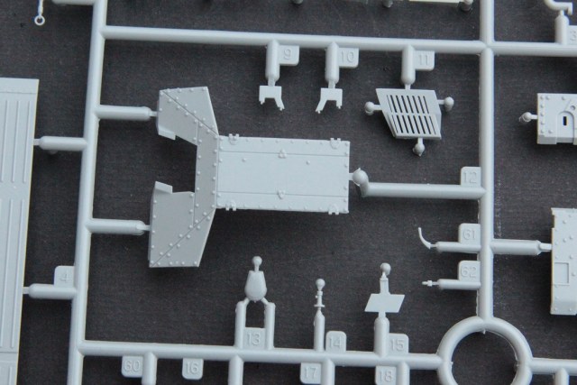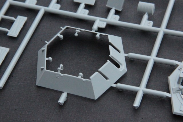 Когда соберешь, башней поменьше вращай, она тут от другой модели, задевает за внутрянку. Да, и деревянную подкладку под домкрат без хирургической кройки на место не поставишь, и звездочка не соответствует данному аппарату (этот момент сильно в глаза бросается). Если не менять звездочки, то приспособа для установки надгусеничных полок не нужна.