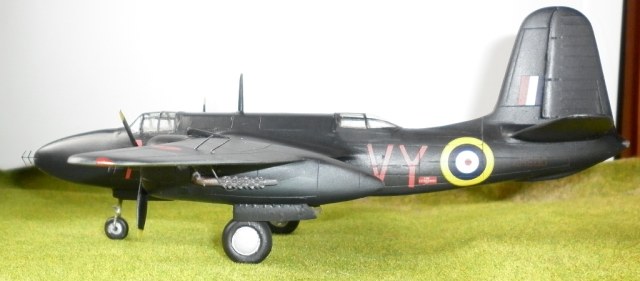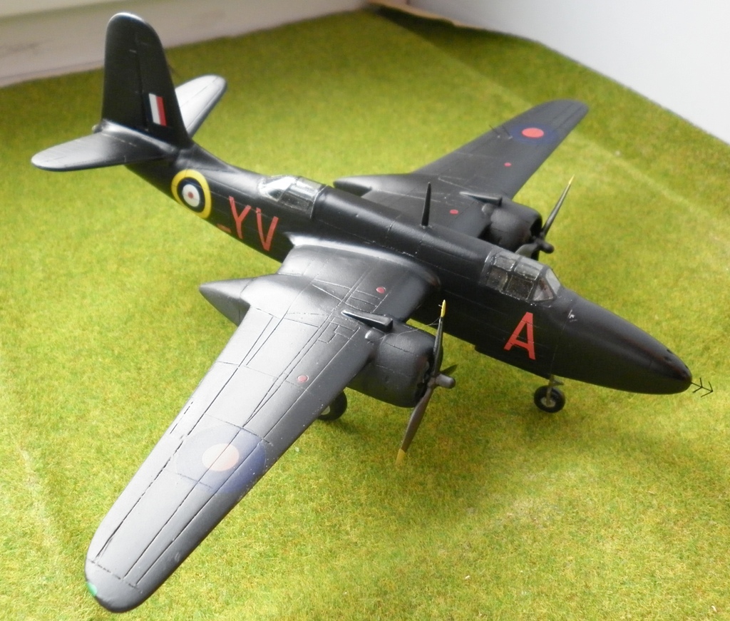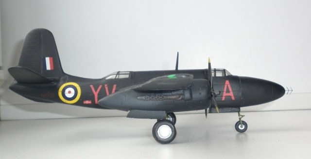 Страшноватая на первый взгляд , после удаления облоя модель лишь немногим уступает , да и то по деталировке интерьеров, изделиям от МРМ. Зато в линейке фирмы - все модификации этого самолёта. От DB-7 до Boston V. Представленный набор позволял собрать на выбор британский "Хавок 2" или американский П-70. Имелось два комплекта носов , фонарей ( британский фонарь имеет иную форму с меньшим углом наклона лобового стекла) , дополнительные пламягасители, и , разумеется , декали. Оставшиеся после сборки детали позволяют доработать стандартный "Бостон" в "турбинлайт", "поиграться" с воздухозаборниками.