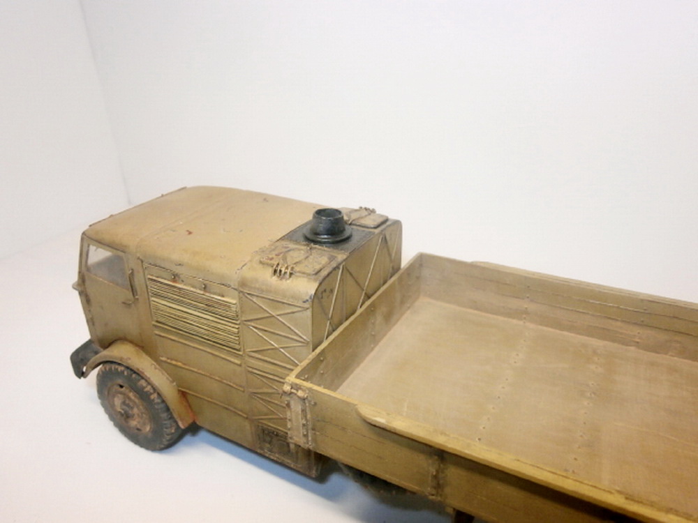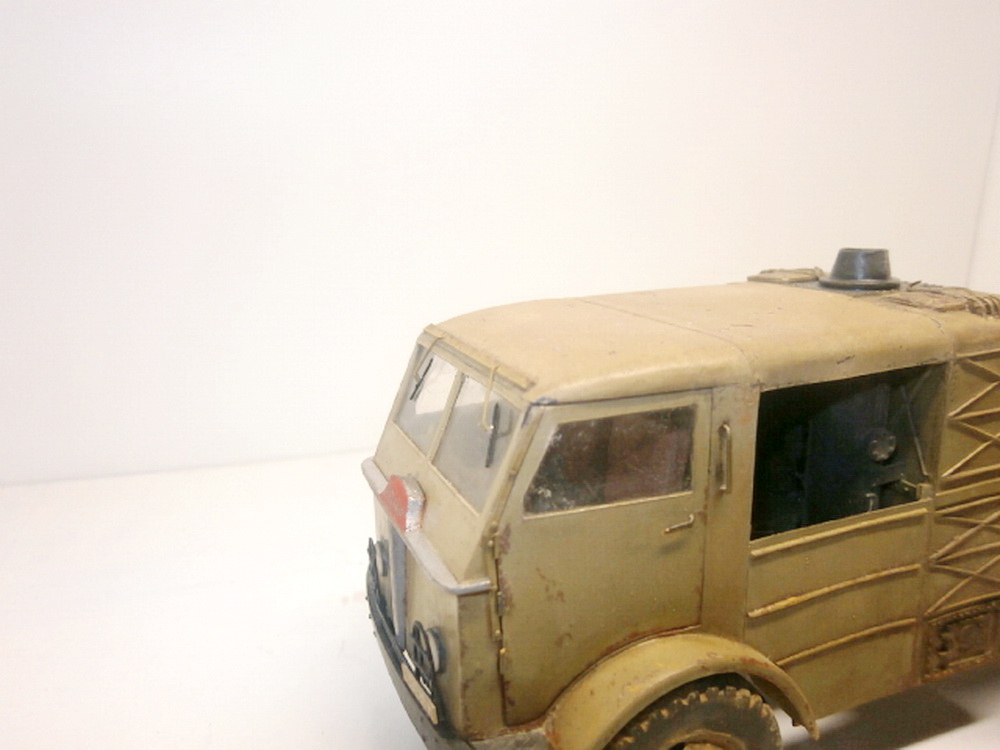 Вся модель изготавливалась из листового пластика разной толщины Тамия, ДОШИРАК, колеса отливались из литьевой акриловой смолы Юнискин, опробовал данный тип жидкого пластика, надо приловчится с ним работать. Окраска Тамия, масло незнаю, взял из запасов супруги, фильтр, немного смывки Тамии, лак полуглянец, тоже непонятный производитель из коробки с красками супруги. Немного пигментов Тамии. Постарался произвести авто с фото, как получился судить Вам. Приятного просмотра. Критику приветствую)))