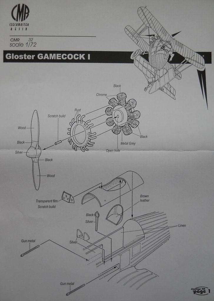 Модель из смолы от Czech Master Resin в масштабе 1/72 (номер по каталогу 32) упакована в картонную коробку с верхним открытием. Литьё весьма среднего качества, есть немало пузырей. Большая часть расшивки сделана неправильно (внутрь). Интересное решение - выполнить одной деталью фюзеляж, нижнее крыло и хвостовое ГО. Ваку-козырёк кабины выглядит неплохо. В данном наборе даётся английская модификация Mk I. Декали отсутствуют. Инструкция довольно наглядна и информативна.