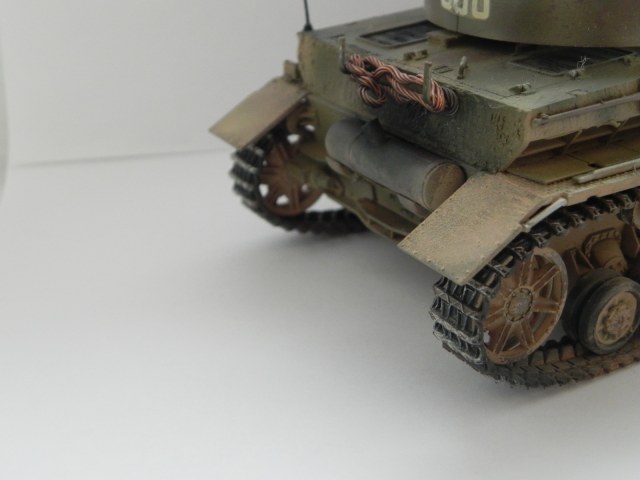 Медную проволоку снимите, на трос только в темноте похож.И крепление зап траков зря не поставили а у тамии они наверно по любому были.