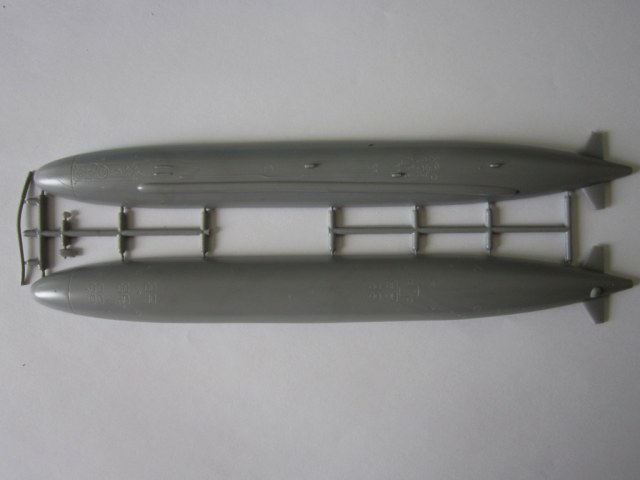 В наборе дается две половинки корпуса , верх и низ , расшивка продавлена хорошо , внешние отличие от корпуса модели «Sturgeon» первой серии , это обтекатель буксируемой антенны , проходящий почти по всей длине корпуса , конец которого закреплен на стабилезаторе КГР. Так же имеется рамка с деталями рулевого оперения лодки , ограждение ВУ , и сами ВУ которые требуют доработки . Плата фототравления с гребным винтом и кнехтами . Фототравление идентично наборам АПЛ «Thresher» и «Sturgeon» . Декаль дает , номер , имя лодки , мерные линии и обозначения аварийных буев . Так же дается традиционная подставка , и инструкция формата А2 .