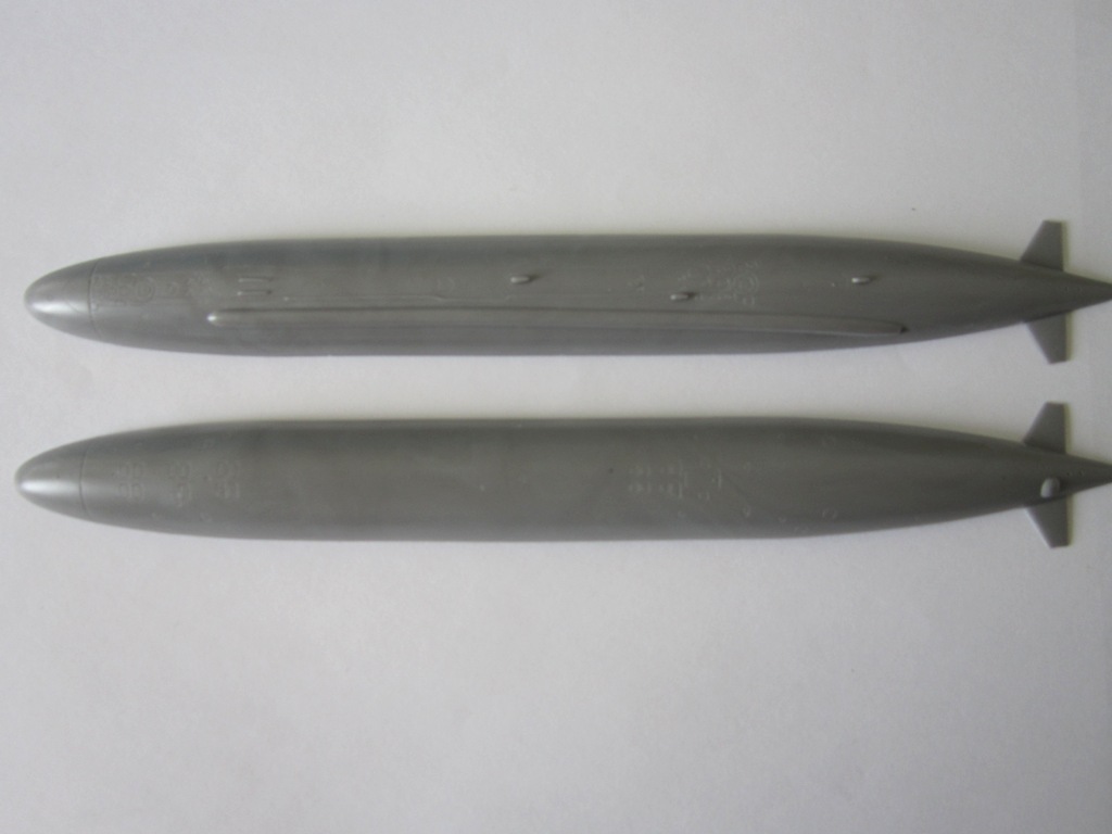 В наборе дается две половинки корпуса , верх и низ , расшивка продавлена хорошо , внешние отличие от корпуса модели «Sturgeon» первой серии , это обтекатель буксируемой антенны , проходящий почти по всей длине корпуса , конец которого закреплен на стабилезаторе КГР. Так же имеется рамка с деталями рулевого оперения лодки , ограждение ВУ , и сами ВУ которые требуют доработки . Плюс дается рамка с деталями палубного контейнера типа Dry Deck Shelter (DDS). Плата фототравления с гребным винтом и кнехтами . Декаль дает , номер , имя лодки , мерные линии и обозначения аварийных буев . Так же дается традиционная подставка , и инструкция формата А2 .