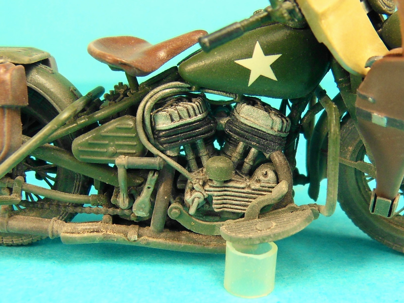 На дугах мой косяк, не увидел шов. С брезентом тоже не учел. По поводу лампы на баке ХЗ почему в зеленый покрасил, может увидел где-то на похожих моделях, посмотрел сейчас валк, действительно не заленая, но и не синяя, темная какая-то) нужно будет ее smoke-ом от тамии покрасить - будет похоже. Кстати, задние стопы и не синие ни разу - а покрашены как раз smoke-ом, это дымчатый лак (если не в курсе), под смоуком база. Но и тут косяк, на валке совсем другой вид...((
