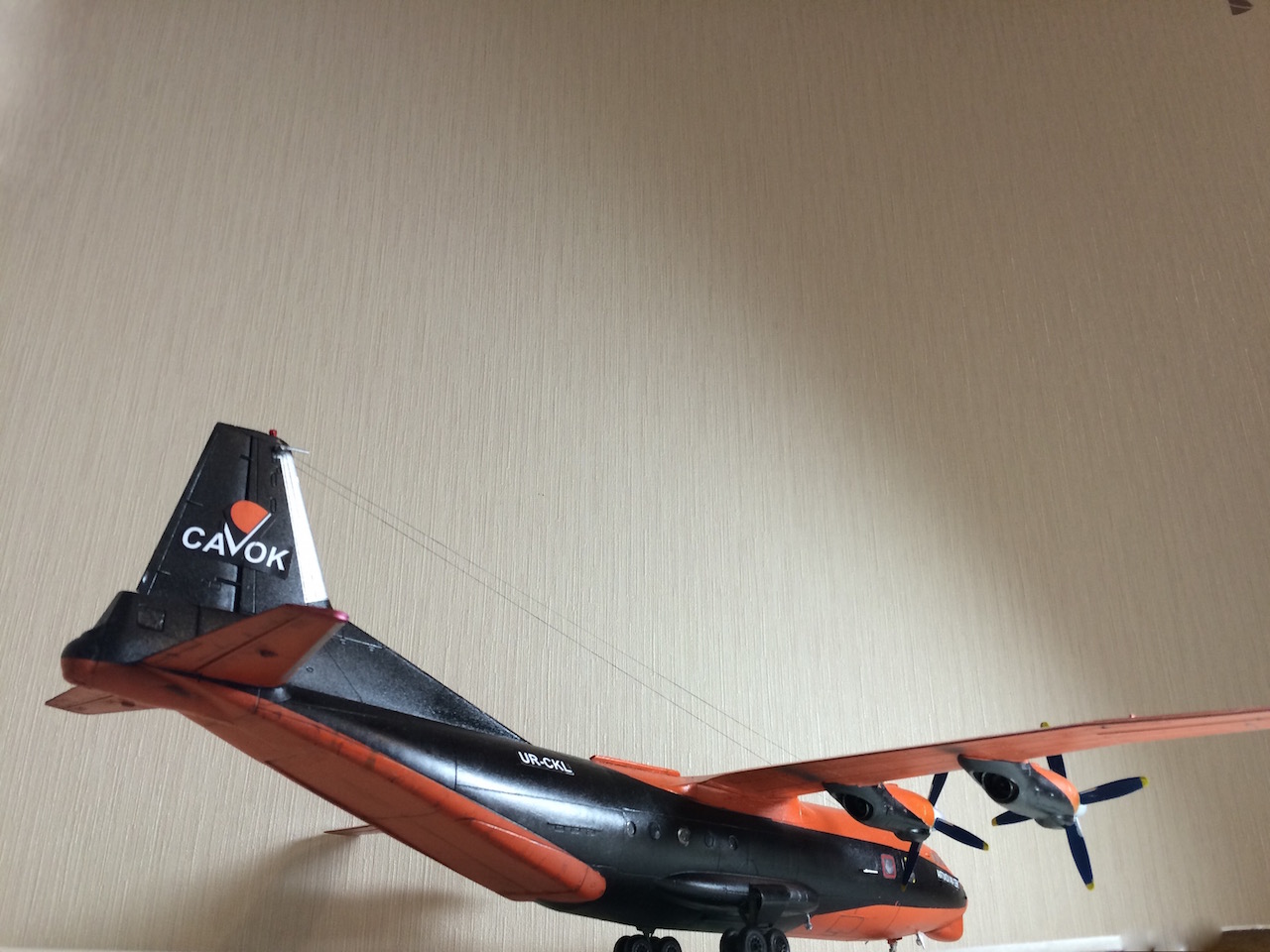Оранжевый цвет верен во всяком случае насколько можно судить по цветопередаче монитора(регулярно наблюдаю их 74 ку в жулянах).Из ошибок хочется отметить неверный обтекатель РЛС,на модели больший чем надо такие в ГВФ демонтируют ставят меньший для экономии топлива.И хвостовая турель в оригинале зашита в отличии от просто окрашенной на модели.