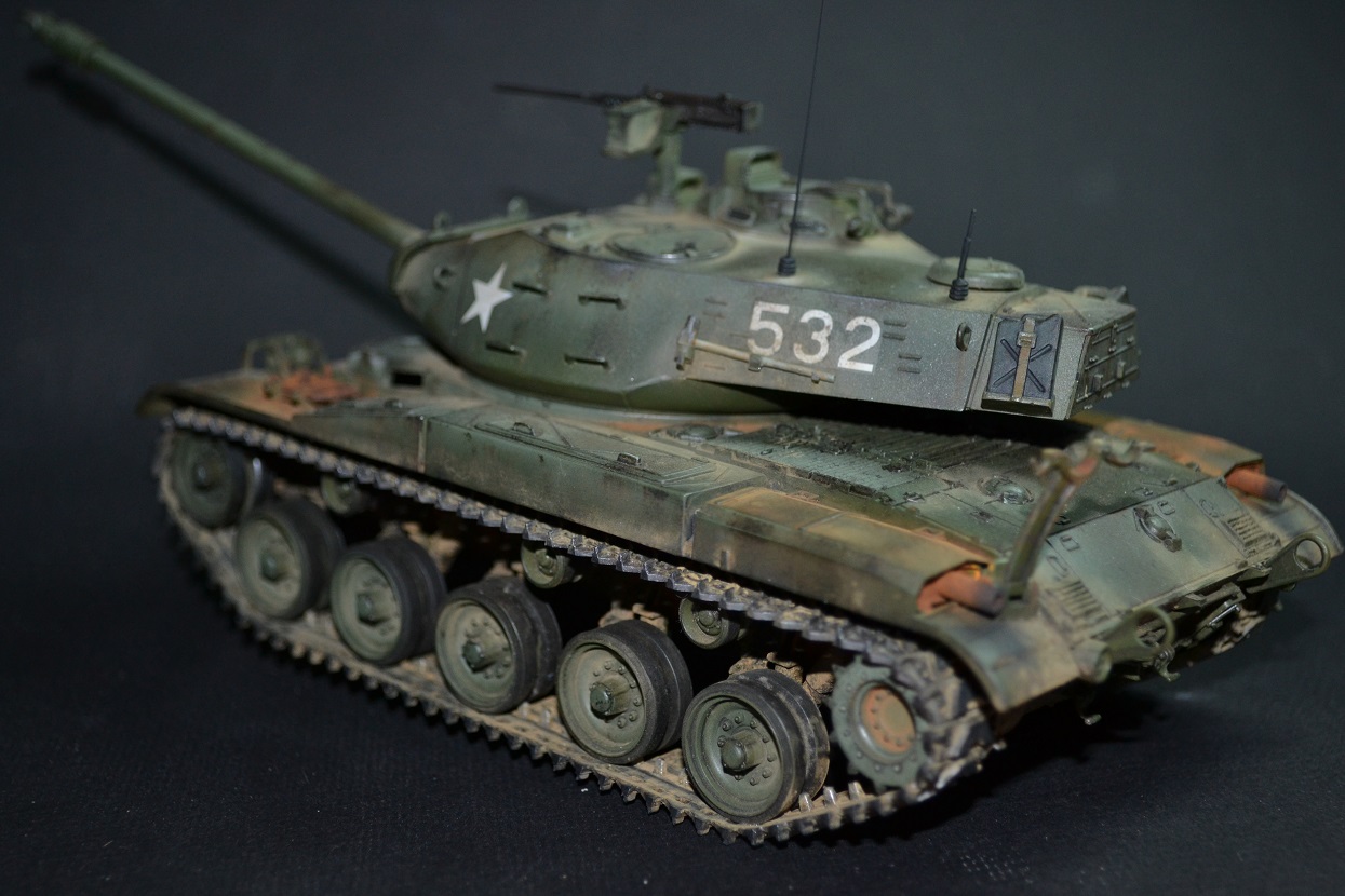 Живо покрашено, симпатично. Но старая Тамия хоть в минимальных доработках нуждается, слишком упрощенно и игрушечно смотрится. Чехол на маску, недостающие поручни и скобы, выштамповки, сварные швы, трос повесить... Да и траки заменить желательно, родные слишком уж утрированы.