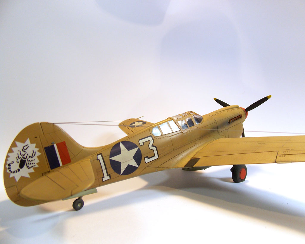 Добрый день! Представляю модель Р-40К производства Italeri. Собирается с большим трудом , понадобилось много подгонки, шпаклевки и нецензурных слов. Но имеется отличная декаль на 6 вариантов. Я остановился на самолете из 64th FS 57th FG, пилот Frank Roldan, Северная Африка, 1942 год. Краски и лаки Ганза, тонировка пастелью. Доработок минимум : ремни в кабине, антенна, тормозные шланги . Приспустил колеса, перестарался, но техники перед вылетом подкачают.