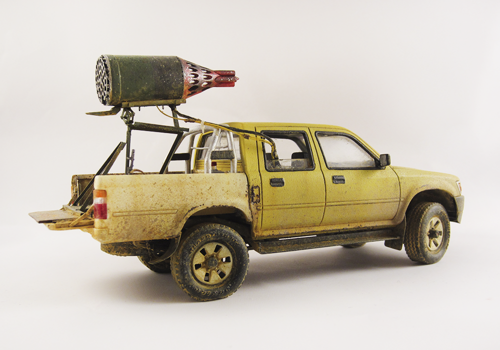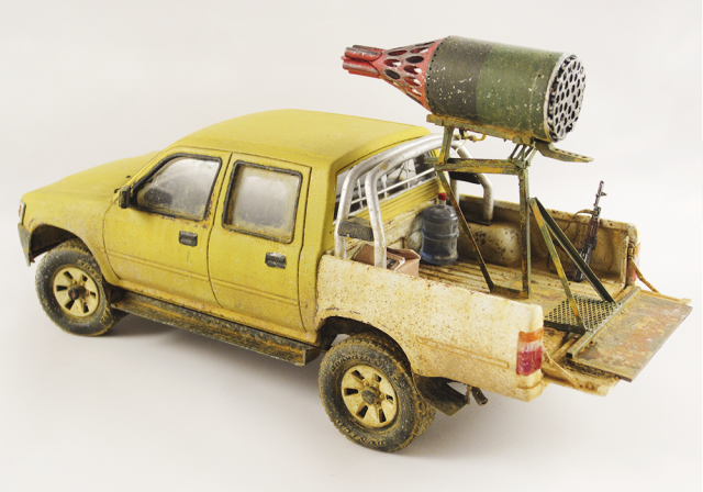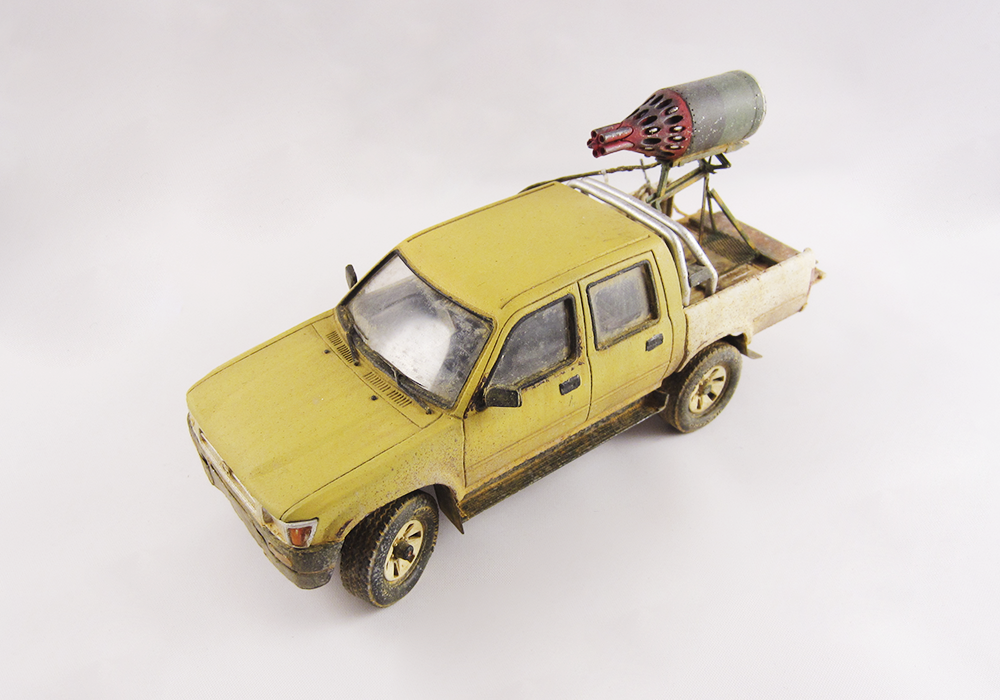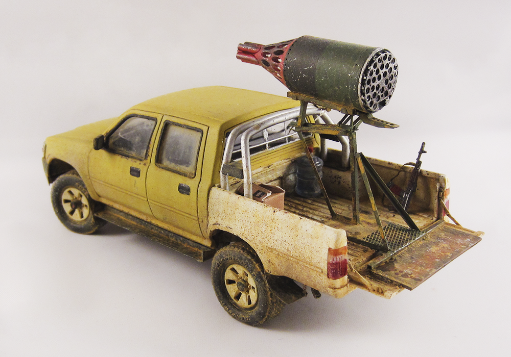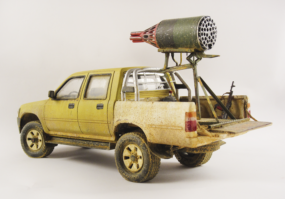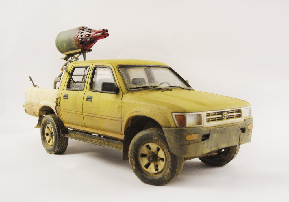 Представляю очередной свой долгострой. Всем известный пикап от MENG дополненный фототравлением, смоляными колесами и ракетницей от ET MODEL. АК из набора советских десантников фирмы Звезда, питьевая бутыль от MENG.
