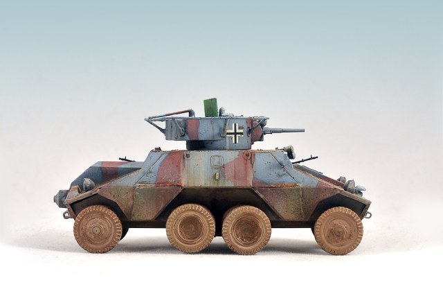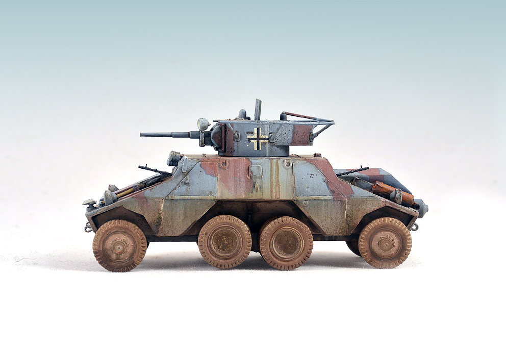 В своей время увидел сей австрийский агрегат от фирмы АМГ. Был немного удивлен этому "тянитолкаю", как по мне он очень оригинален для бронетехники того периода. По этому решил погуглить и в вики нашел инфу что после вторжения вермахта в ссср часть этих машин была модифицирована путем замены базовой башни с 20мм пушкой на башню трофейных Т-26. Достоверных фото я в сети не нашел, но меня это не остановило. В общем сделал эту модификацию пусть теперь она хотя бы будет в фотках моей модели.