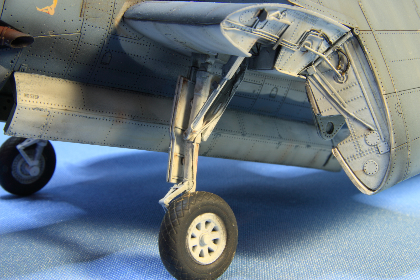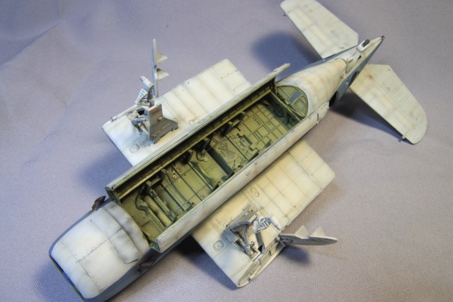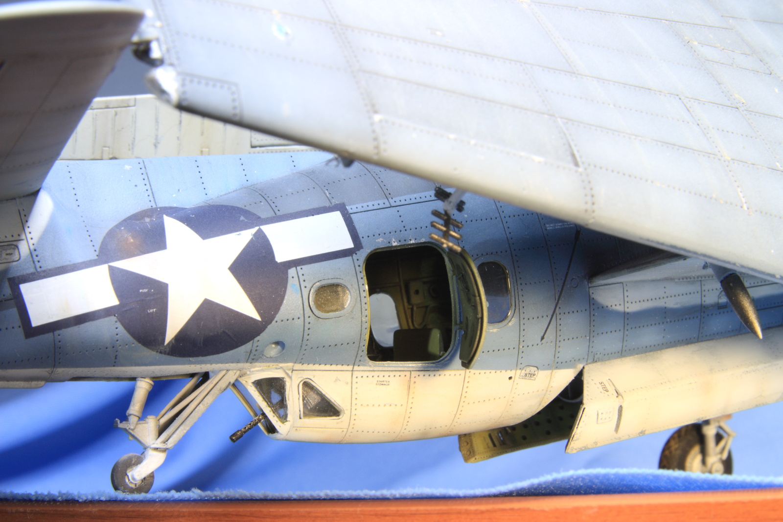 По поводу показа со сложенными крыльями. Да - смотрятся хуже, но с другой стороны есть плюсы, - видно механизмы складывания крыла, а для палубника это неплохо, ну и места на полке занимаете значительно меньше. Здоров он все же...