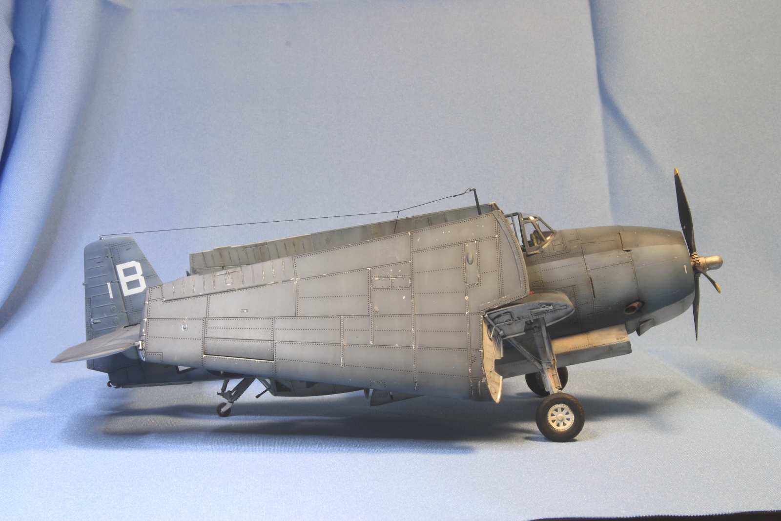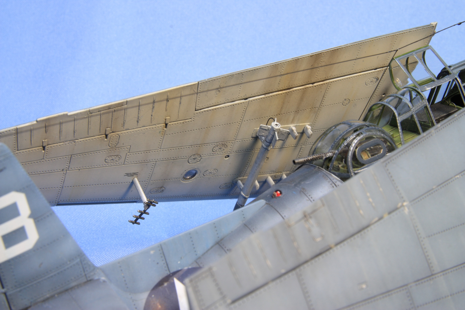 Во-вторых, скорее всего, данный набор является производной от набора с ТBM-3, который по моему мнению является более точным от данной фирмы. А трешка довольно сильно отличалась от 1С. В результате производитель, изменив только капоты на модели начал ее «выдавать» за модификацию 1С, предоставив моделистам править свои косяки за их же деньги. И если некоторые вещи, такие как отсутствие остекленения бомбового прицела, торчащие пулеметные стволы из крыльев (если конечно эти палочки можно так назвать), подвесные баки, которых на 1С никогда не было, не правильные пилоны ракет, как собственно и сами ракеты можно поправить, то вот расположение ручек и лючков на бортах фюзеляжа, исправить совсем тяжело.
