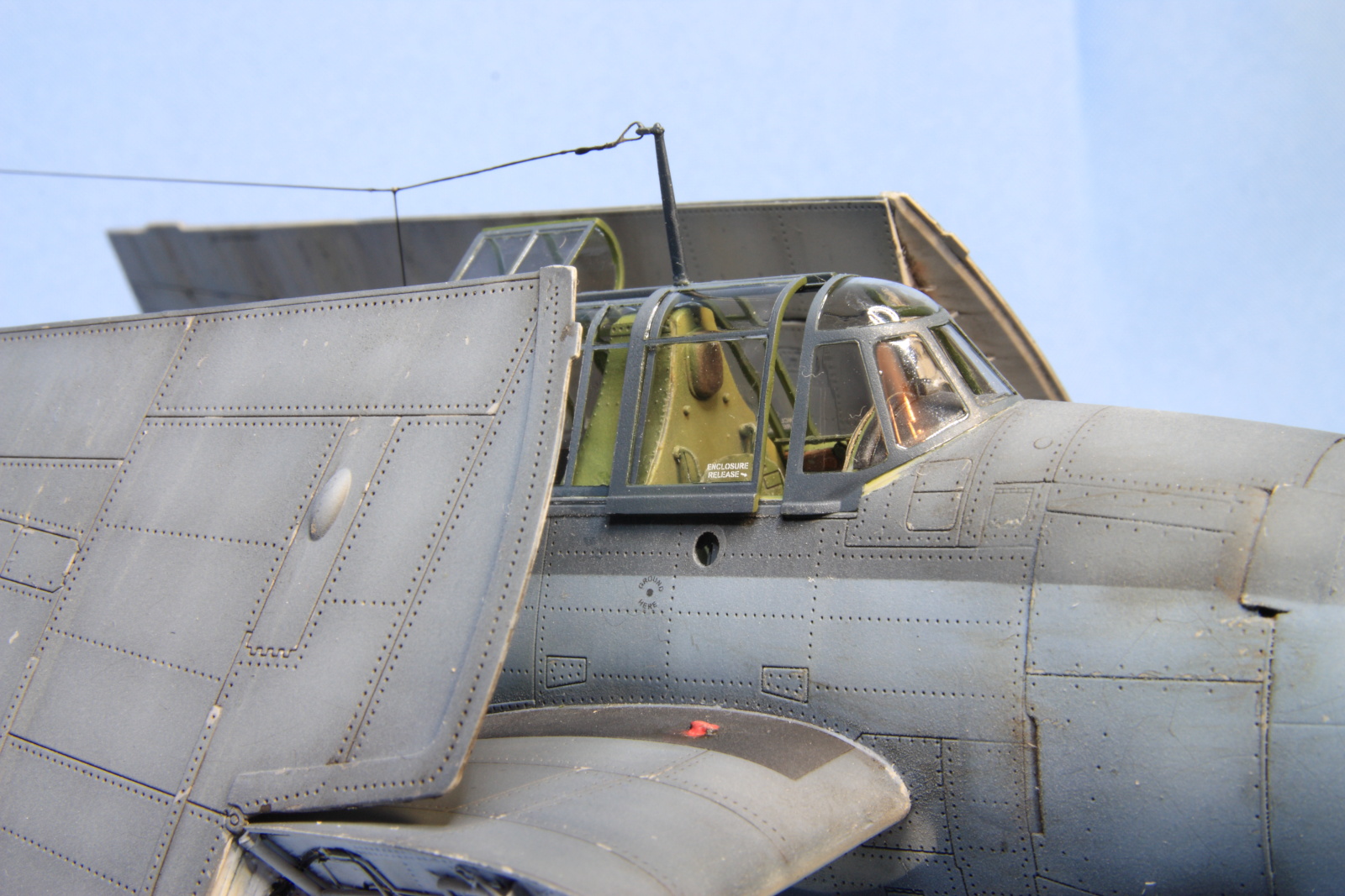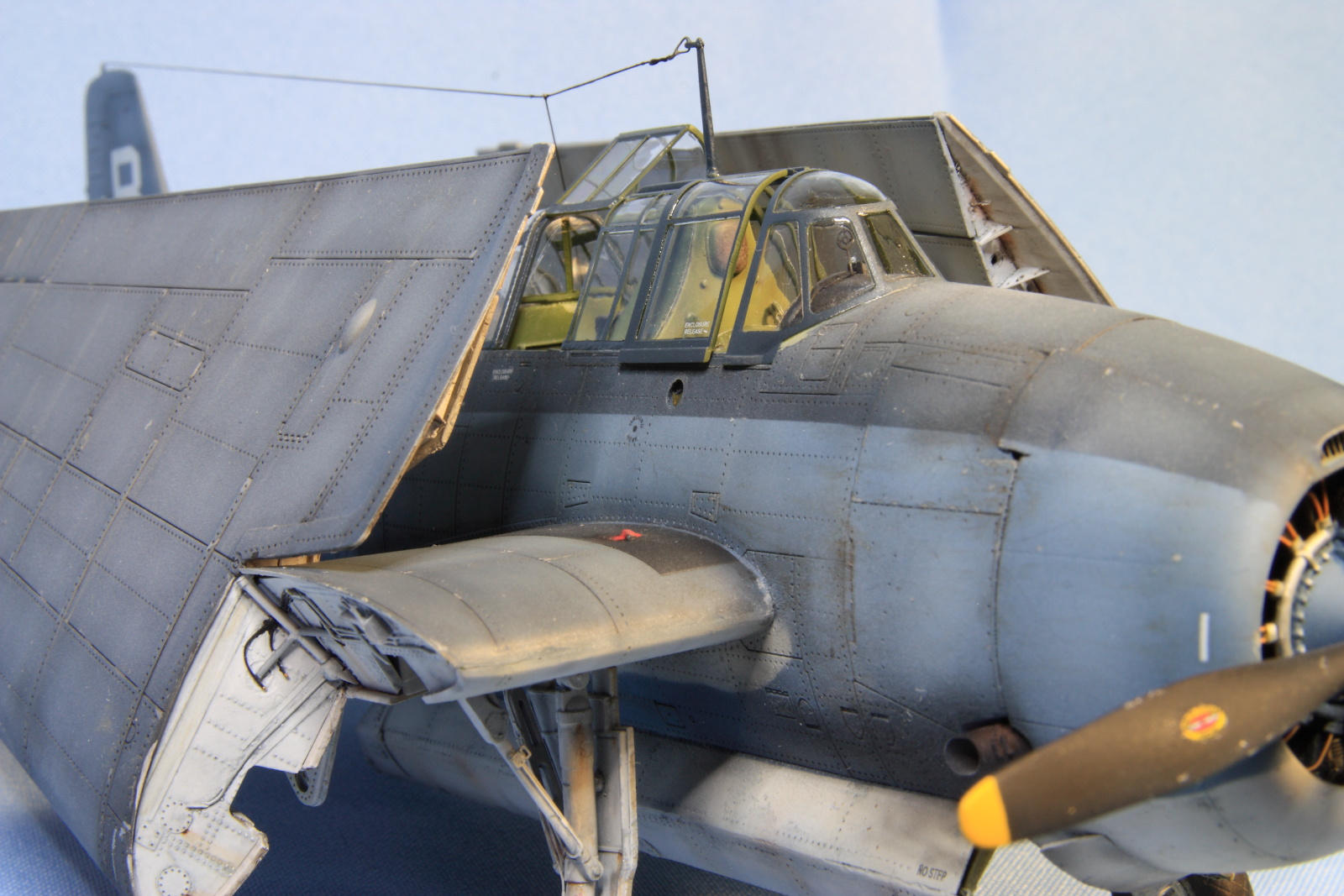 Понравилось как вы сделали и покрасили эту модель уважаемого самолета. Хорошо все, за исключением петли тросика антенны у стойки.