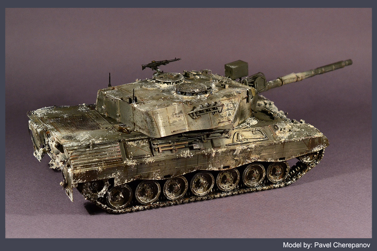 Не понравилась работа! Иногда на мой взгляд, слишком реалистичное загрязнение модели идёт ей во вред, все детали сливаются в однородную, монотонную массу. Я сначала вообще подумал, что это 72-й масштаб. Великолепной деталировки менга, которую похвалил автор не видно вообще. Если бы было сделано основание, то танк смотрелся бы на много гармоничнее. А так остаётся ощущение, что модель просто мокали в грязь. Возможно свою роль сыграла не слишком хорошо проведённая фотосессия. Модель выглядит игрушечно. Уверен, что живьём модель выглядит на много лучше.