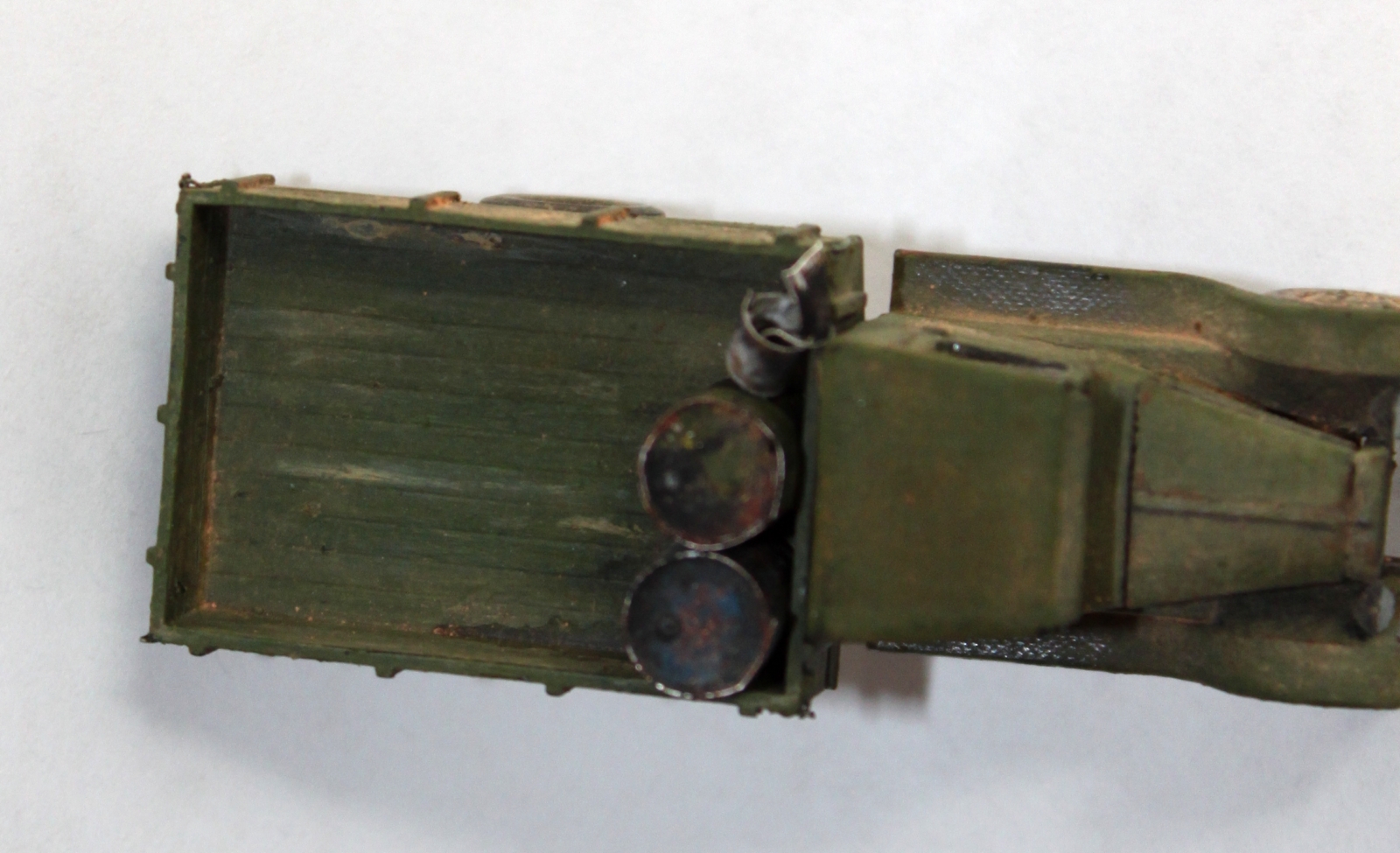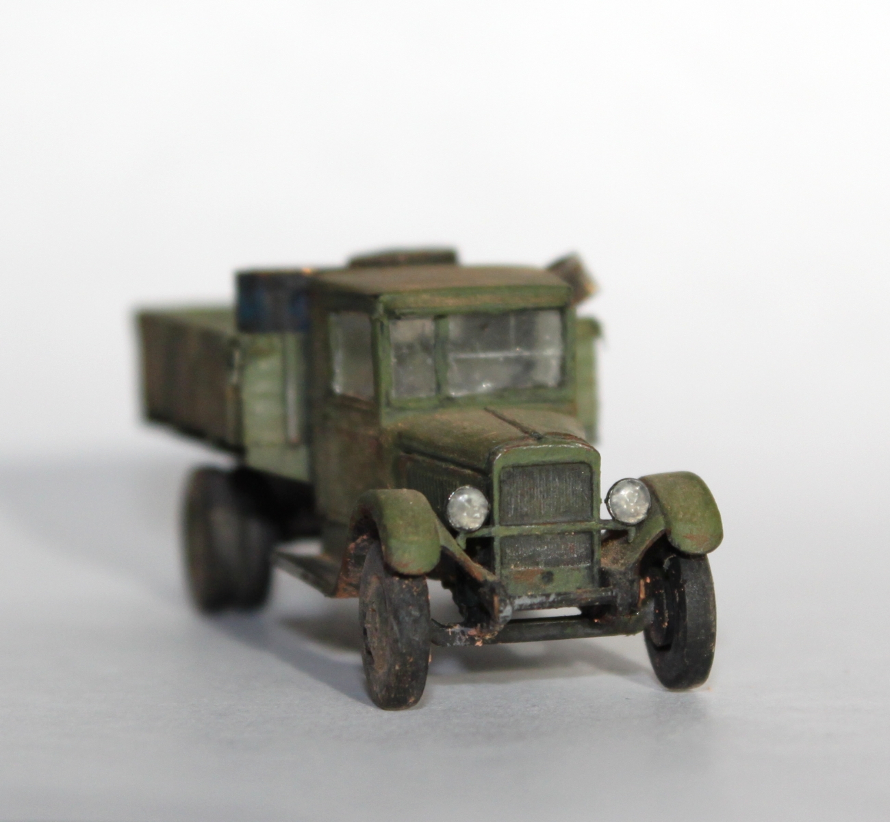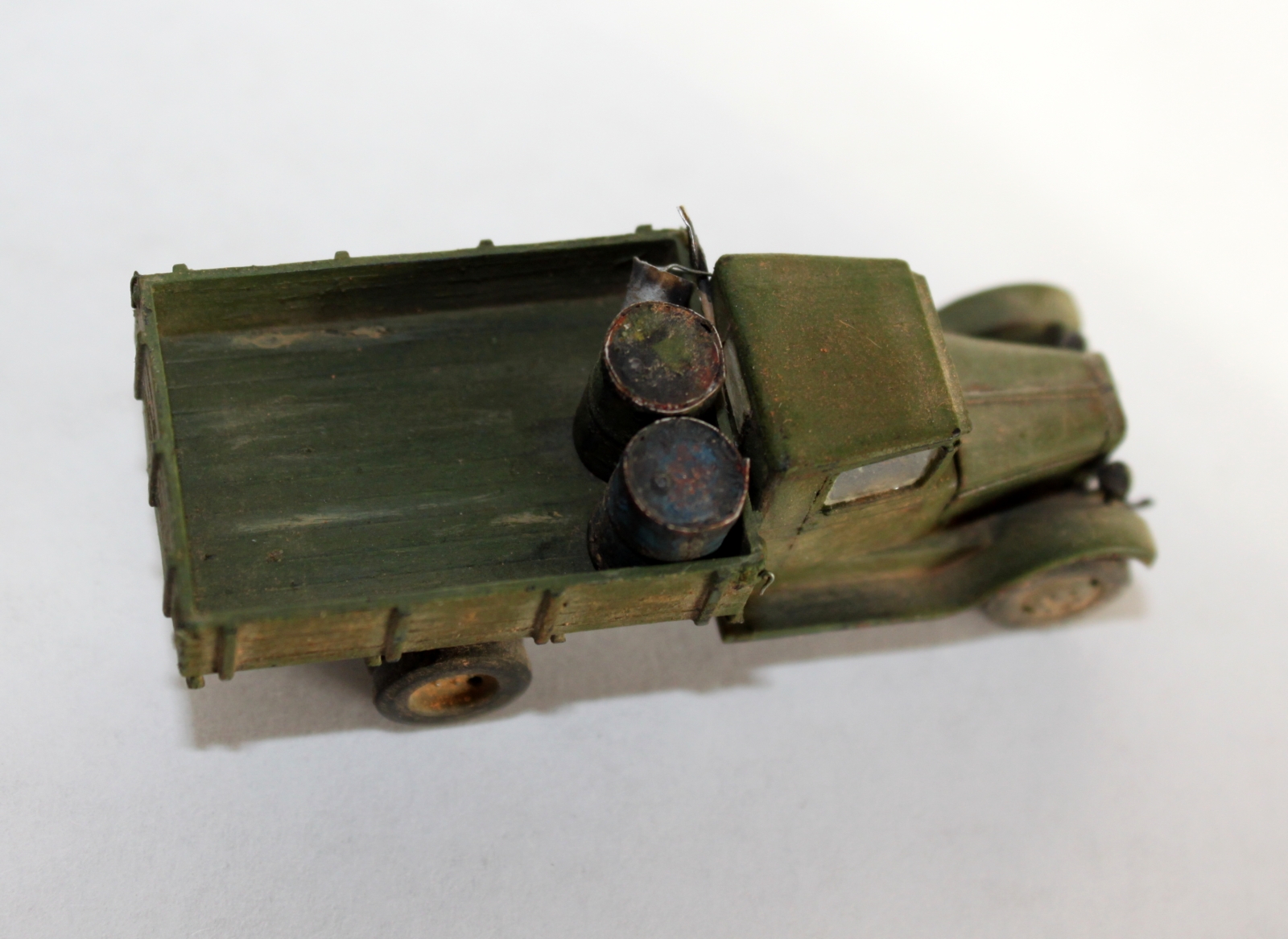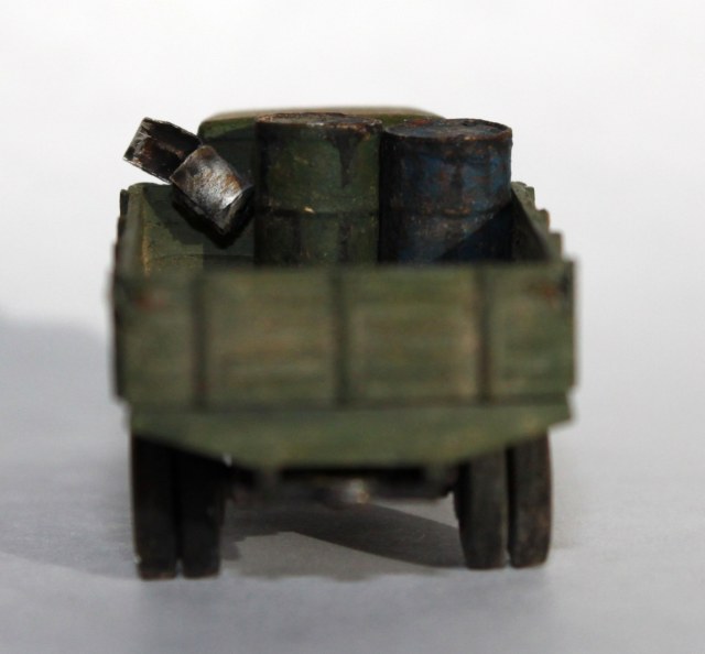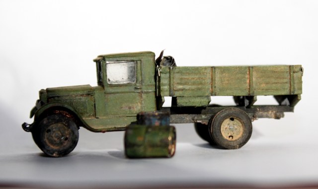 Да, изначально пытался сделать отлично, но чего-то не хватило. Косяков много: капот, колеса, не ровные доски на бортах кузова. Опять-же окраска; нет обозначений, наносившихся на такие автомобили (если честно - побоялся испортить модель). Поэтому, пока, только песочница.