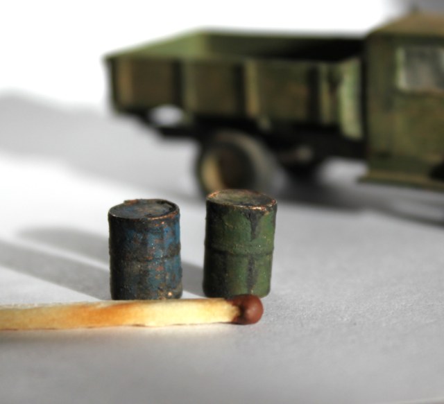 Так как от тента отказался (то, что было в наборе не понравилось, а то, что самодельное получилось - просто тихий ужос) были следаны пара бочек, совковая лопата и ведерко.