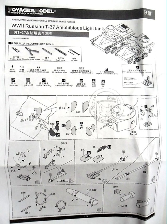 Приобрел тут по случаю фототравление от "Вояджера" на легкий плавающий танк Т-37А от "ХоббиБосса" (№ РЕ35669).
