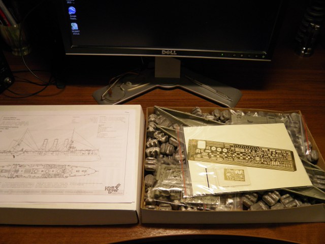 Модель дана по состоянию на 1903 год, кроме этого, к 6-дюймовкам в травлении даны щиты, которые появились в 1904-м. Начинаем смотреть подробнее…