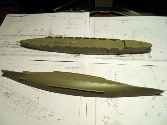 Расшивки подводной части корпуса нет, хотя медные листы на стапельных фото хорошо просматриваются – придется работать самому: