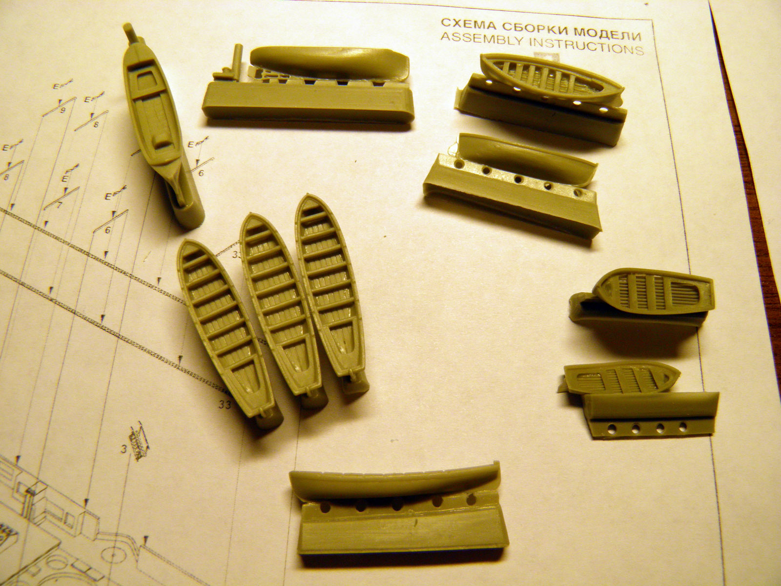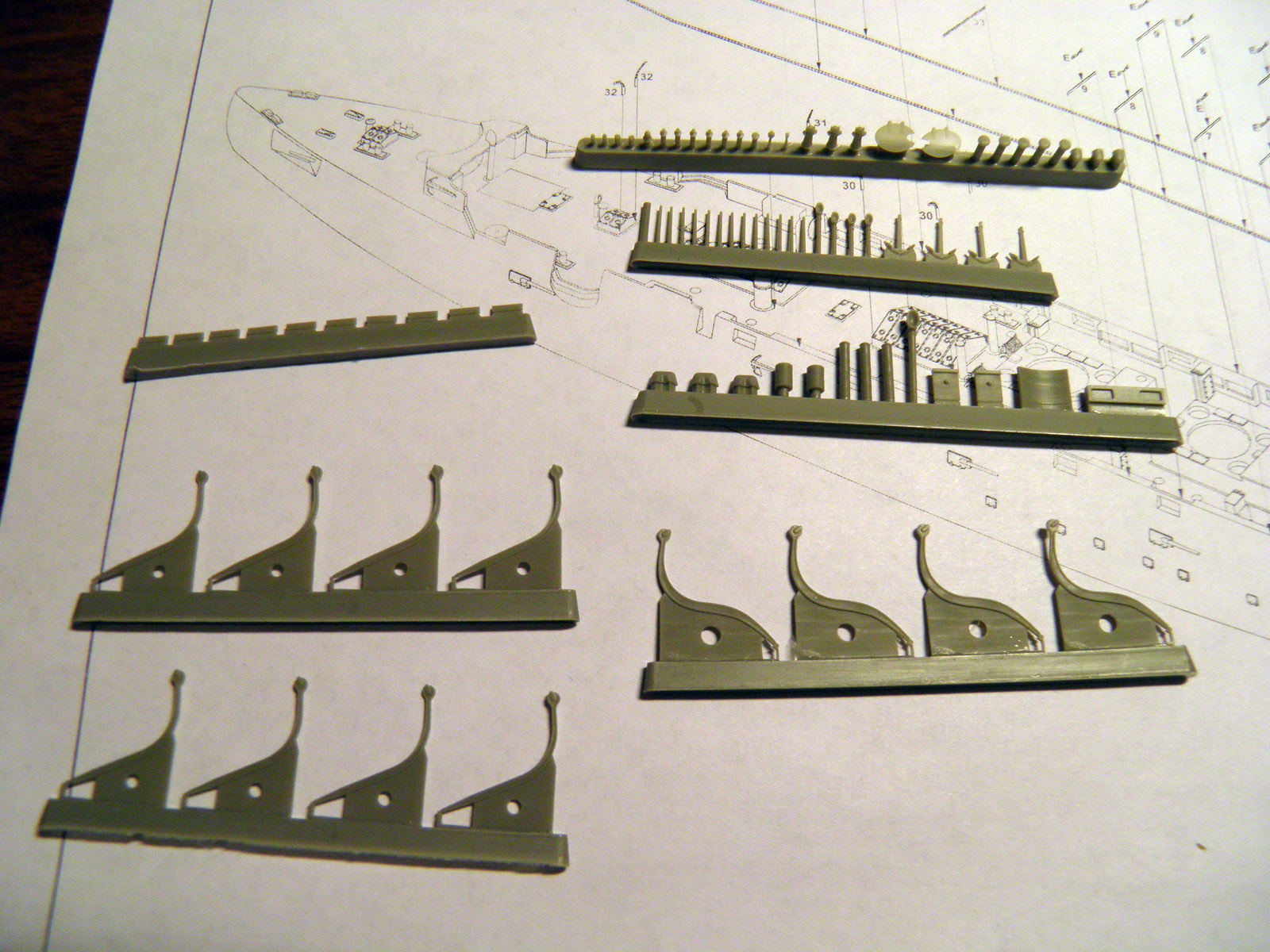 Отливки аккуратные, облоя мало, расшивка четкая. На палубах мостиков даже воспроизведена расшивка деревянных рыбин, за что отдельное спасибо.