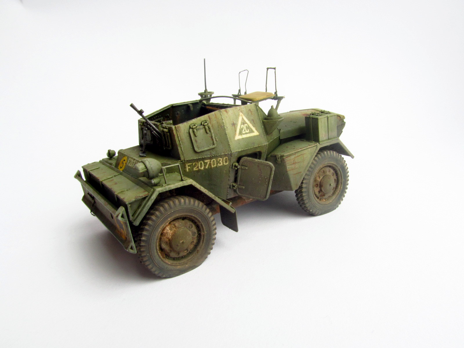 Доброго времени суток, представляю вам свою работу Dingo Mk.III. Достался мне этот набор в дар от товарища, но к сожалению в коробке не было 1 литника (не положили на заводе) выкручивался с помощью листового пластика.