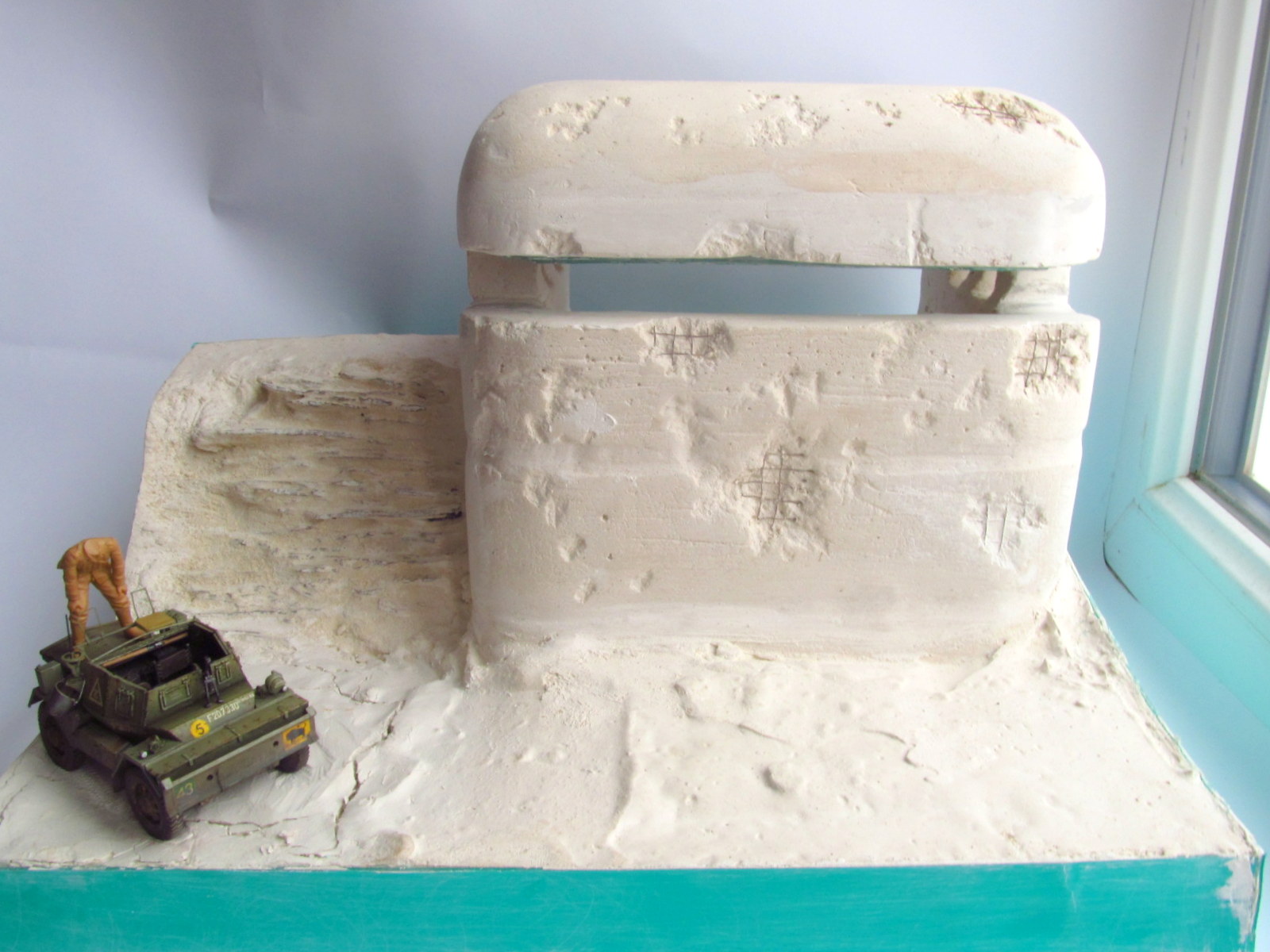 Хорошая работа, вот только попытка показать нагруженные/подспущенные колёса несовсем удачная имхо, непонятно, что случилось с кольцевой выштамповкой на боковине покрышек в месте контакта колёс с "землёй"; с декалью на правом борту явно чтото не так-отклеилась по нижней кромке(?)-однако заметно всё это только вблизи...Остальное понравилось.ДОТ замечательный вырисовывается!