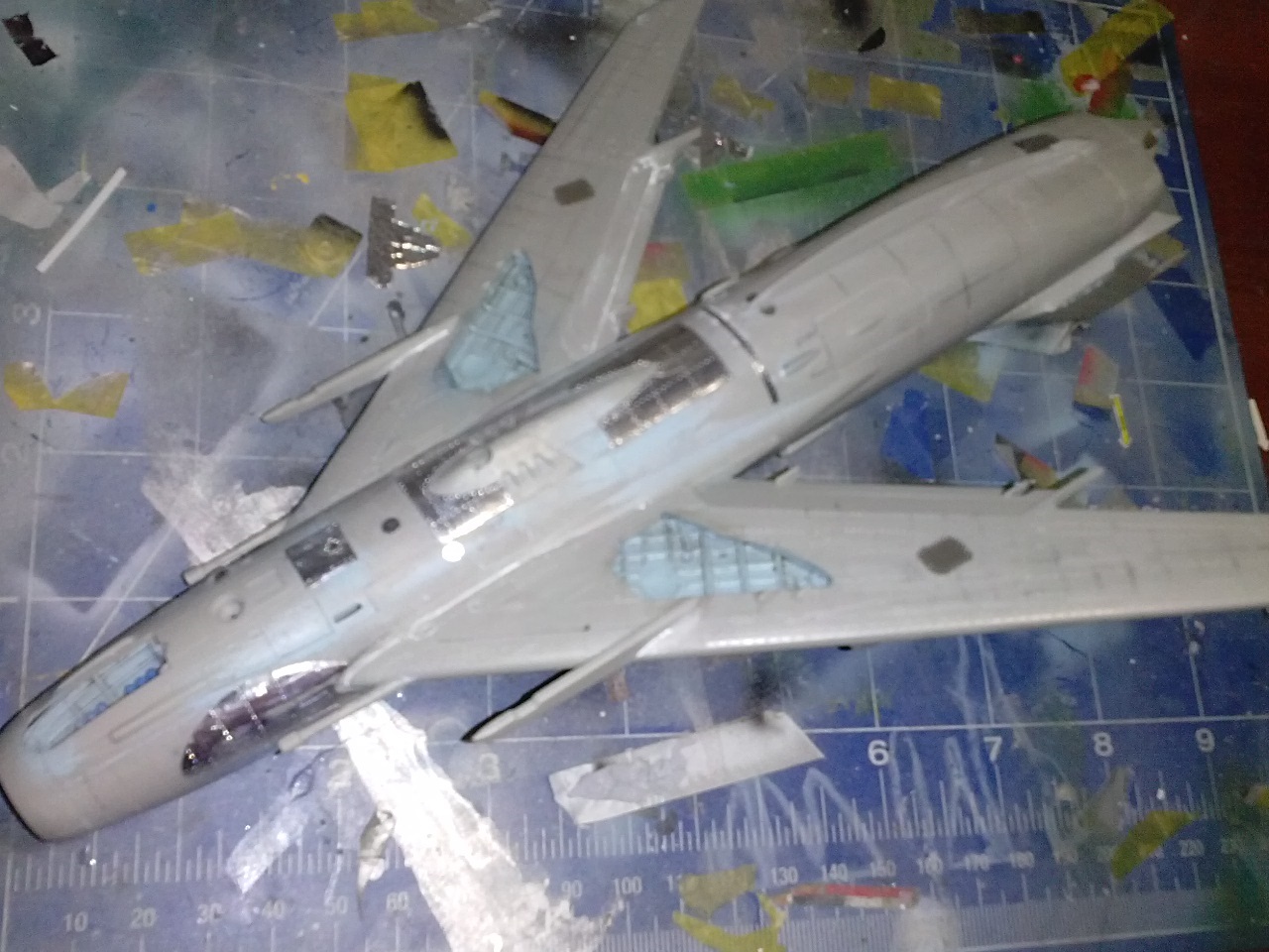 Дабы самоль смотрелся четче, я его полностью расклепал по четрежам из "Уголка неба".Во всю использовал фольгу самоклейку. В качестве эксперимента попробовал загрунтовать в черный цвет, чтоб металлик выглядел ярче (все фигня...)