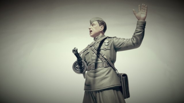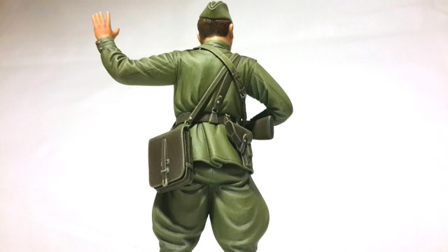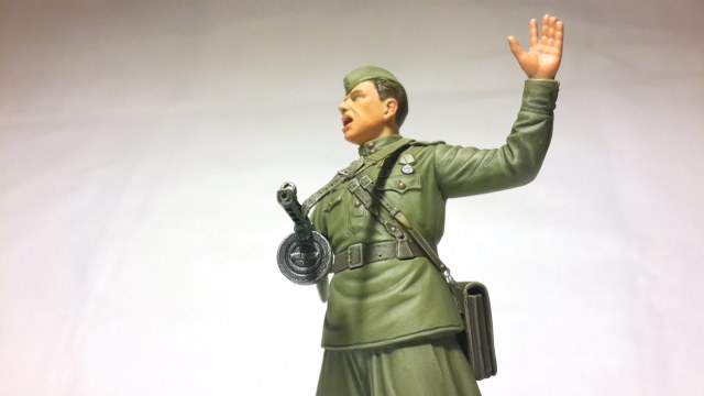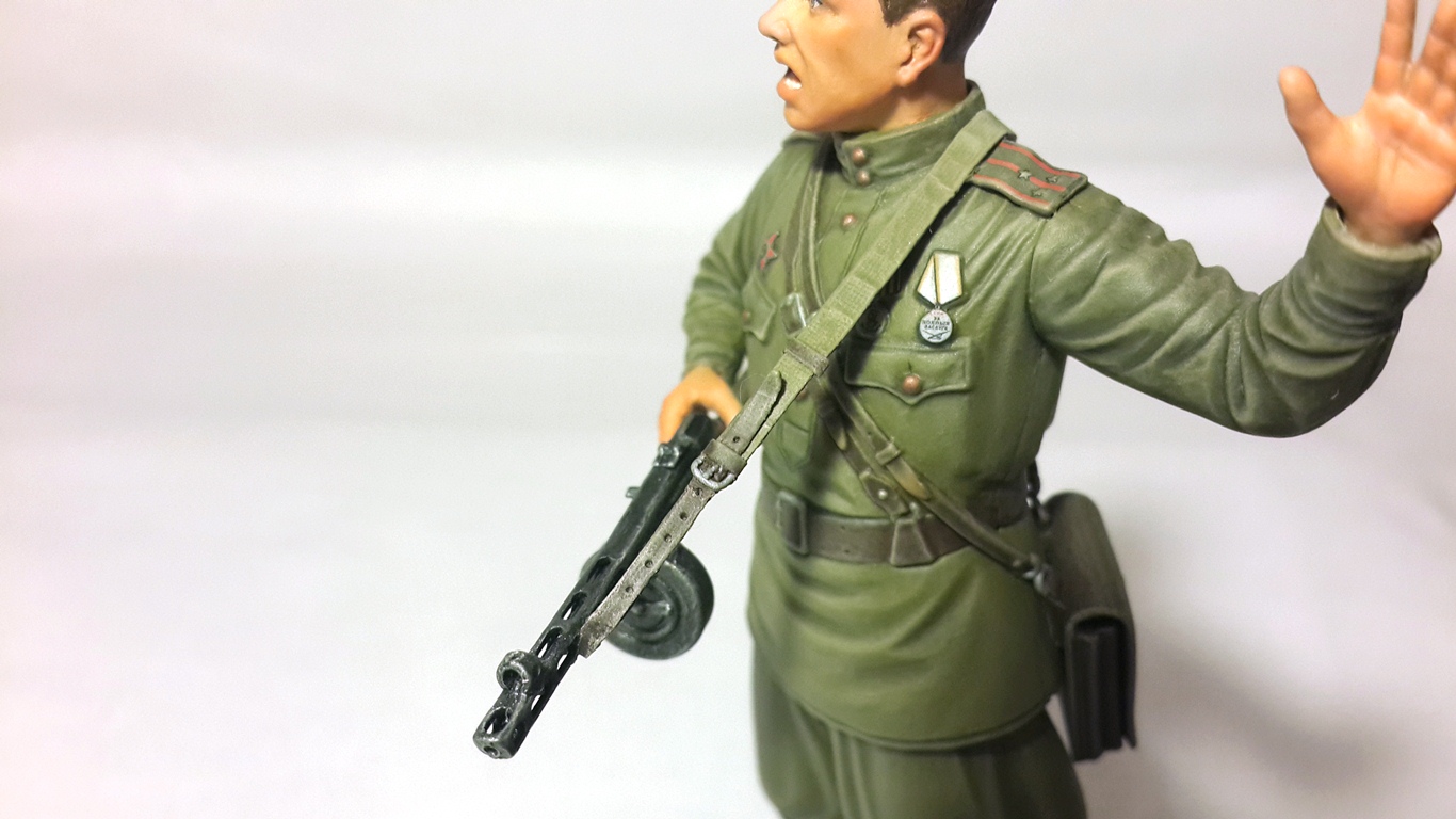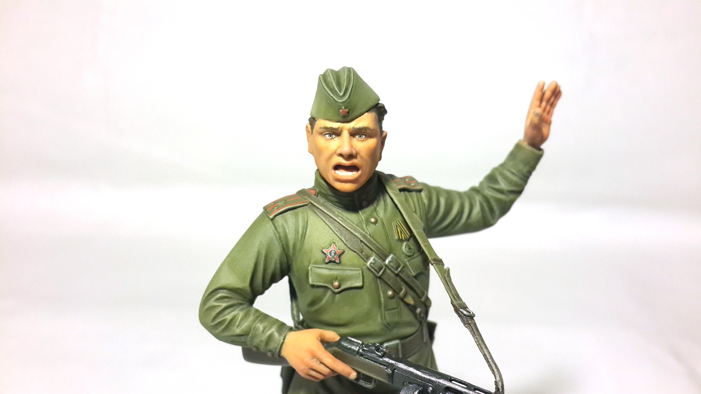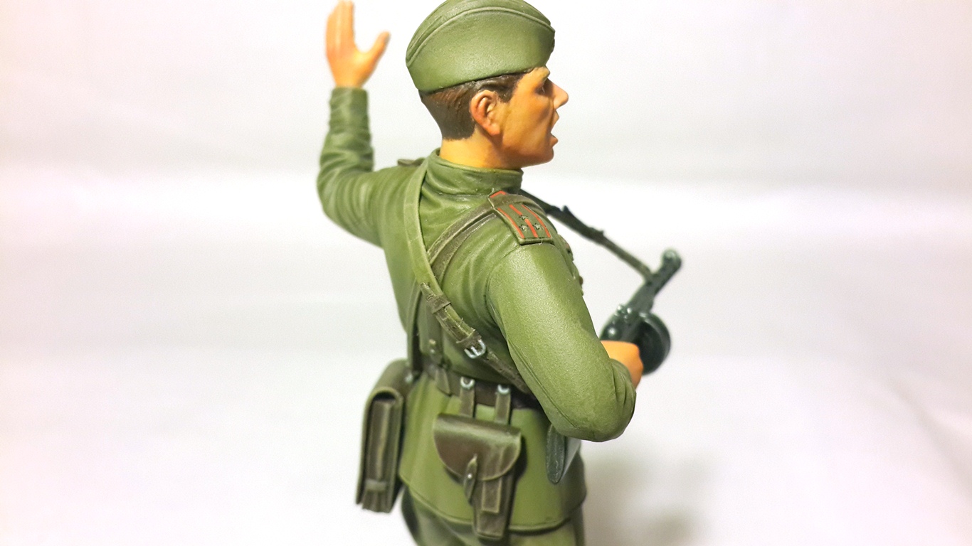 Данная модель офицера задумывалась, как часть диорамы в пару к танку Т34-85. Задумка изначально была сделать не война времен ВОВ, а того офицера который бы мог участвовать на параде с инсценировкой боевых действий в наши дни. Также остается задумка сделать диораму с его участием на послевоенных учениях, то есть уже после войны.