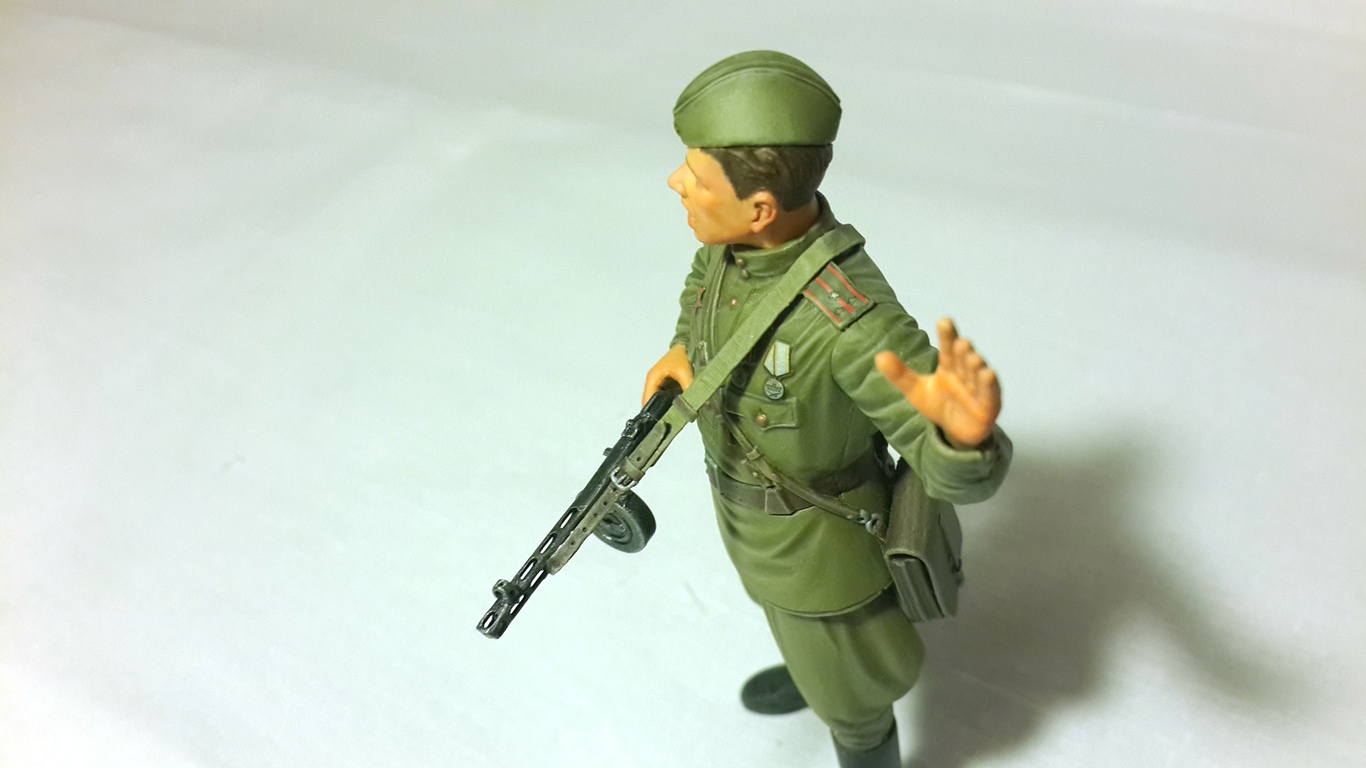 Все это объясняется тем, что танк Т-34, который я собираю (журнальная серия Eaglemoss) и усердно переделываю его и дорабатываю всеми подручными инструментами, дотируется 1960 годом. Вот поэтому мне и нужен не запыленный и пропитанный потом и кровью солдат, а вполне свежий воин. Главная цель была сильно не запачкать и не запылить его!