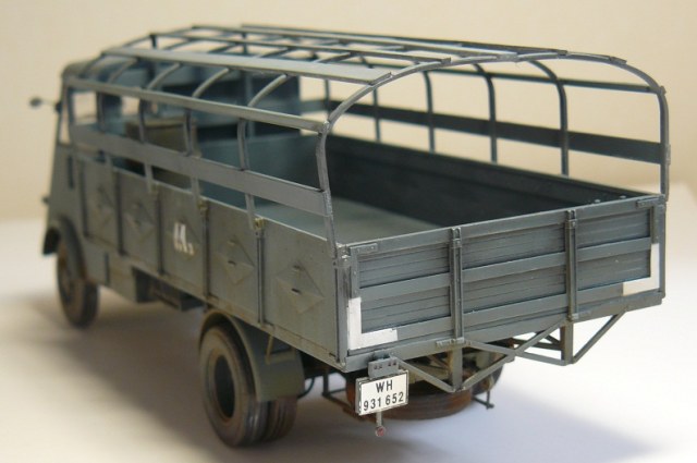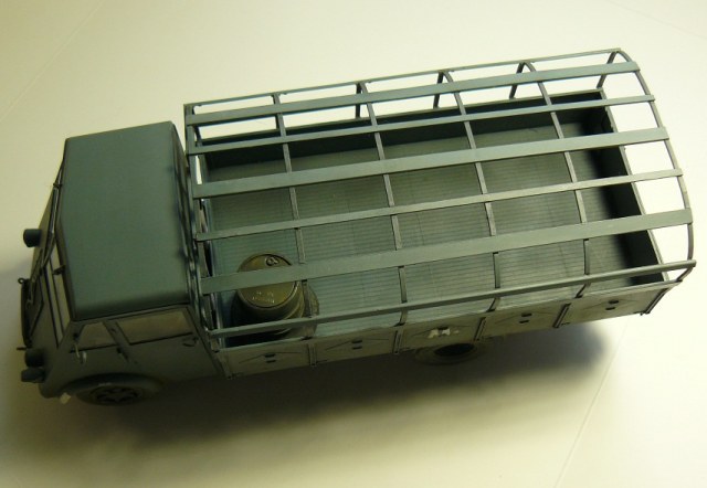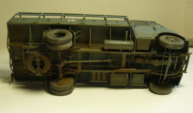Как раз у этого автомобиля кузов цельнометаллический. Поэтому никакого деревянного настила нет. Да и не ставилась задача сделать "ушатаный" автомобиль. По моему мнению это для диорам.