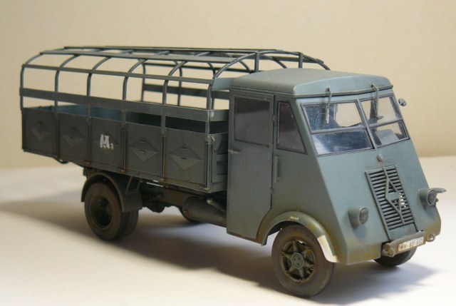 Здравствуйте коллеги, представляю свою первую модель на этом сайте Рено AHNФранцузский 3х тонный грузовик на службе вермахта. Автомобиль входил в унифицированную серию военных грузовиков Рено 2х тонного ANSи 5 тонного ANR. Машина своего рода апофеоз технологичности и упрощения. Выпуск его продолжался до 1943 года, когда в результате бомбежек союзной авиации завод был почти полностью разрушен. В целом машина оказалась достаточно удачной, но не слишком массовой ,было произведено около 4 тыс ,самой распространенной моделью оказалась 2х тонка. Машина применялась и на всех фронтах большинство видимо попало на территорию СССР. Моя модель представляет грузовик, применявшийся на восточном фронте в 41г. Попытался сделать конкретную машину по фотографии. Насколько получилось судить вам.