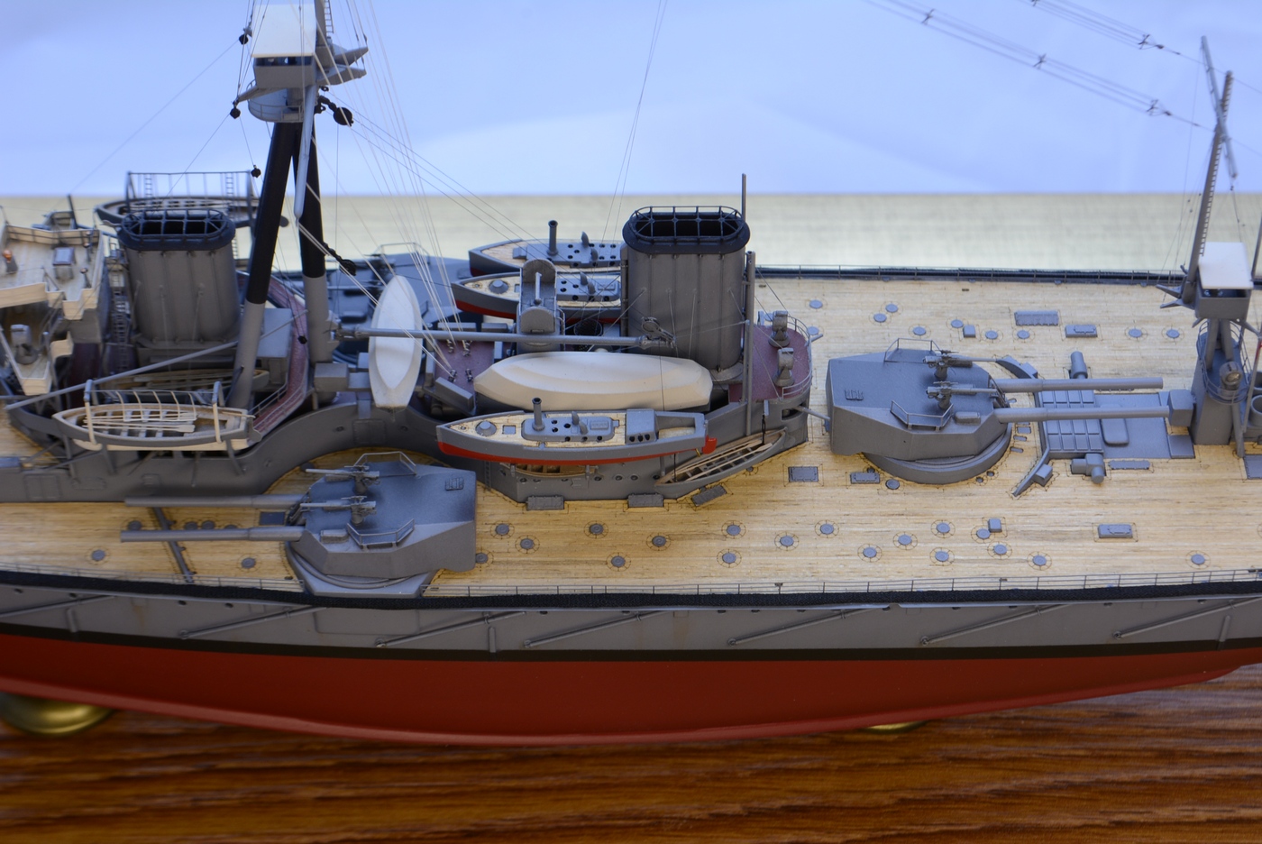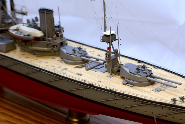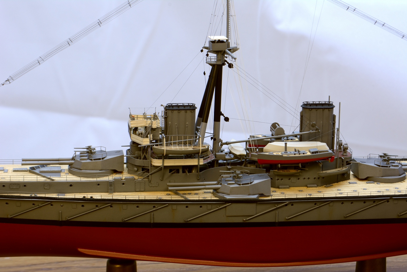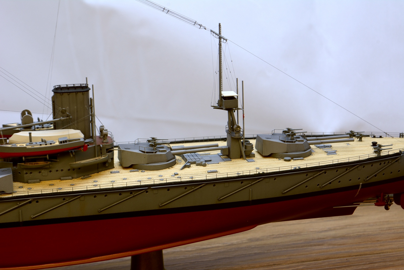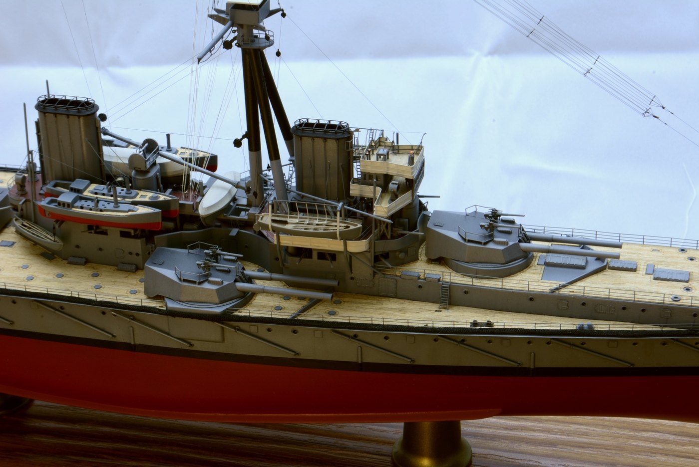Алексей, вполне приличная модель за свои деньги. Главный косяк по матчасти это барбеты боковых башен. О нём я подробно и с картинками в сказке писал, он излечим достаточно не сложно. Упрощений конечно много, но они в этом масштабе у всех производителей есть. Главный недостаток этого набора это качество литья, точнее утяжки на корпусных деталях. Чтобы их нормально вывести придётся все выступающие элементы сносить шпаклить а уже на ровный корпус востанавливать все мусоропроводы, лючки и тд.